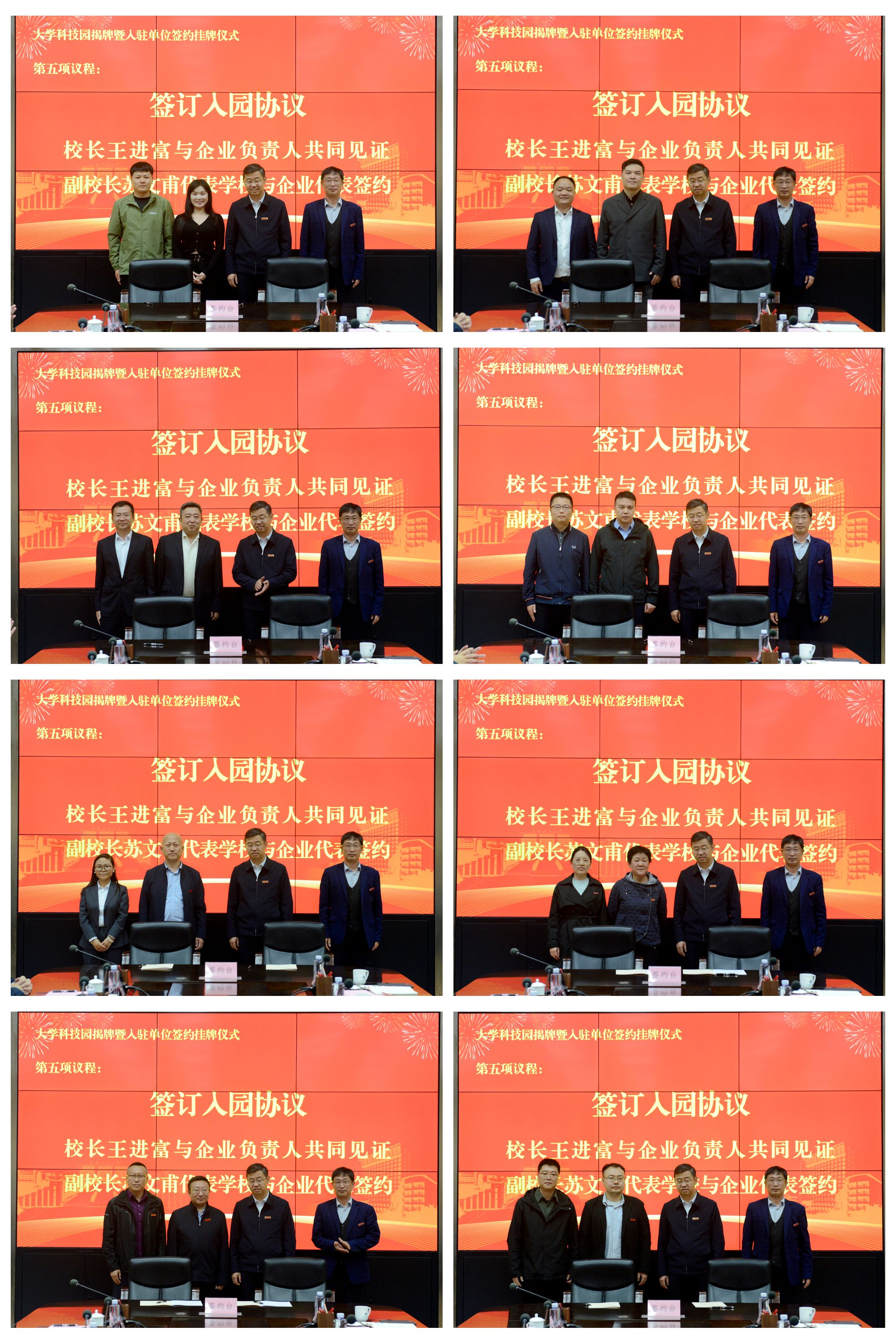 入駐意向協(xié)議簽訂環(huán)節(jié)中,在王進(jìn)富校長(zhǎng)的見證下,蘇文甫副校長(zhǎng)代表學(xué)校分別與8家入駐企業(yè)代表簽約,標(biāo)志著校企資源共享、優(yōu)勢(shì)互補(bǔ)、協(xié)同創(chuàng)新的合作模式正式開啟。