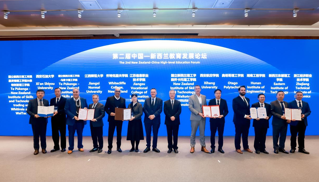 10月30日下午,我校副校長張榮軍受邀參加第二屆中國—新西蘭教育發(fā)展論壇,并與新方院校代表在中國教育部副部長任友群及新西蘭大學(xué)教育部長,科學(xué)、創(chuàng)新與技術(shù)部長沙恩·雷蒂見證下,展示了我校與國立新西蘭理工所屬維特利亞理工學(xué)院和惠靈頓理工學(xué)院設(shè)立碩士層次中外合作辦學(xué)項目的合作意向書。