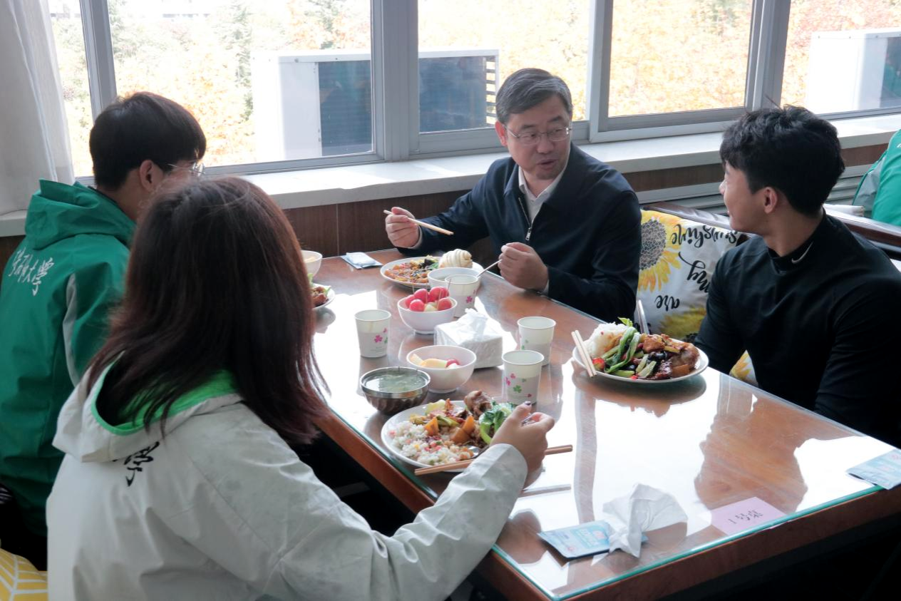 儀式結束后,校領導以及各相關職能部門和學院負責人與運動員代表共同舉行了“師生午餐會”,并向同學們贈送了紀念品。餐桌上,與會各位老師與學生們親切交流,詢問運動訓練和在校生活情況,積極關心和回應同學們近期關注和遇到的各類問題,在學習、就業(yè)、生涯規(guī)劃等方面給予同學們很多建議。大家紛紛表示,校領導及老師們的關懷讓他們倍感溫暖,未來將以更優(yōu)異的成績回報母校。