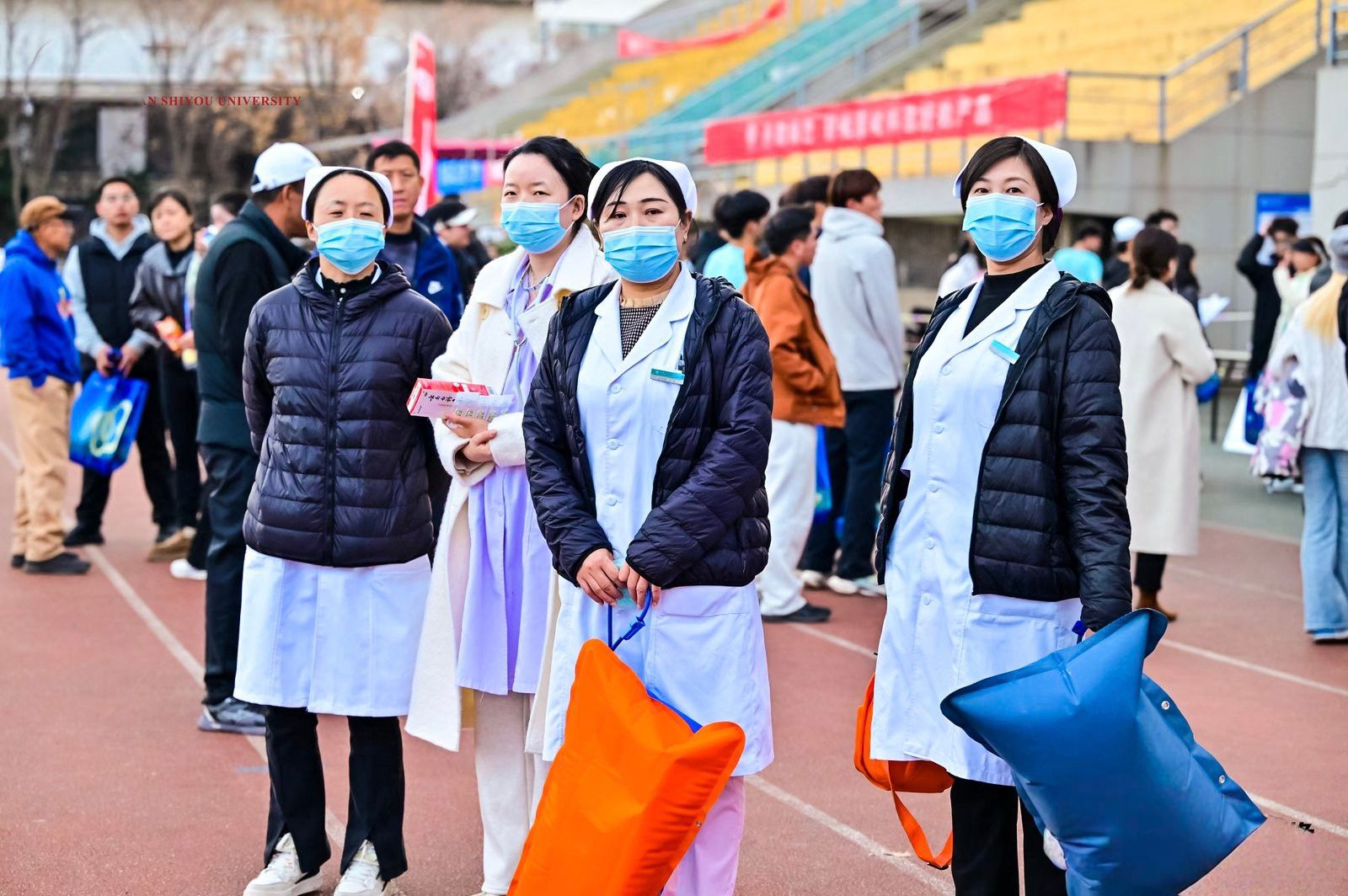 為保障活動(dòng)安全進(jìn)行,所有參賽者均提前簽署了《健康安全承諾書》,承諾遵守賽事規(guī)則,服從工作人員安排。醫(yī)療、安保和補(bǔ)給站志愿者各司其職,為選手提供全方位的保障服務(wù)。校醫(yī)院全程待命,確保能夠及時(shí)處理突發(fā)情況。