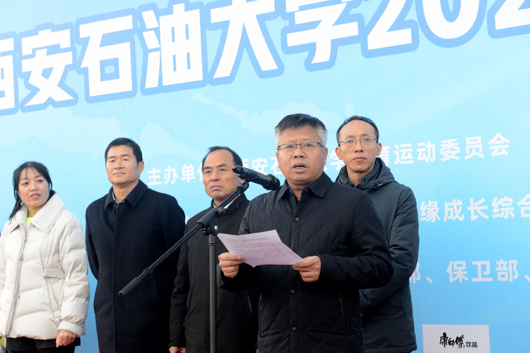 16時(shí),開(kāi)幕儀式正式拉開(kāi)帷幕。集體熱身后,全體參與者齊唱國(guó)歌,激昂的旋律回蕩在校園上空。副校長(zhǎng)張驍勇在致辭中表示,推動(dòng)全民健身與全民健康深度融合,是黨和國(guó)家的重要方針。舉辦本次校園健康跑,不僅是一場(chǎng)體育賽事,更是一場(chǎng)展示校園活力和師生精神風(fēng)貌的體育盛會(huì)。希望大家在奔跑中,既能挑戰(zhàn)自我、突破極限,也能相互鼓勵(lì)、攜手并進(jìn),深刻體會(huì)“更快、更高、更強(qiáng)、更團(tuán)結(jié)”的奧林匹克精神真諦。