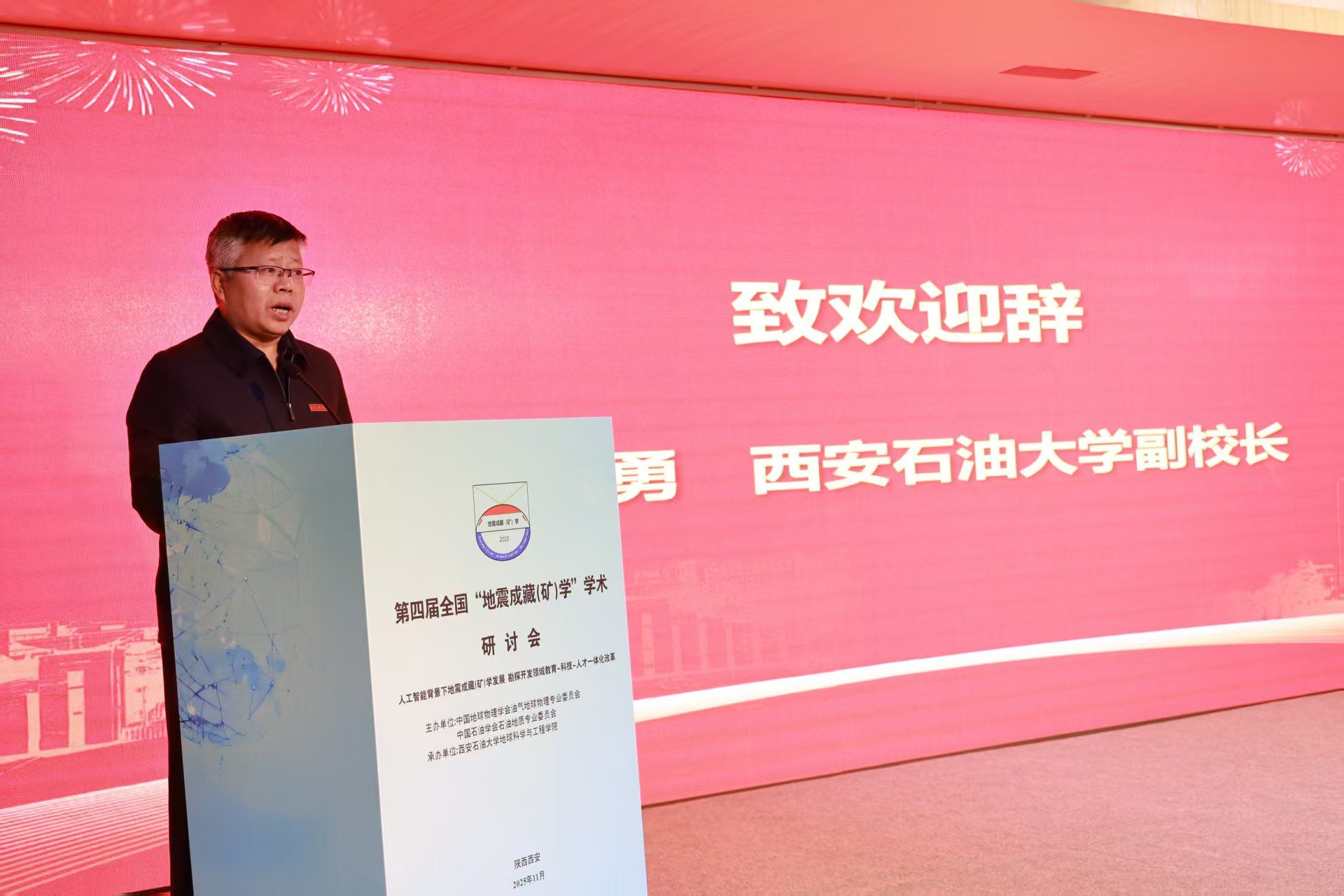 我校副校長張驍勇代表會議承辦單位向與會嘉賓表示熱烈歡迎,并表示,地震成藏(礦)學作為一門融合了現(xiàn)代油氣成藏(成礦)理論與先進地球物理技術(shù)的新興交叉學科,正憑借其獨特的技術(shù)優(yōu)勢與理論價值,成為破解復(fù)雜地質(zhì)條件下能源勘探難題的關(guān)鍵力量,為行業(yè)高質(zhì)量發(fā)展提供了重要支撐。面對能源安全新形勢,推動地震成藏(礦)學與人工智能等前沿技術(shù)融合,是服務(wù)國家戰(zhàn)略需求的必然選擇。