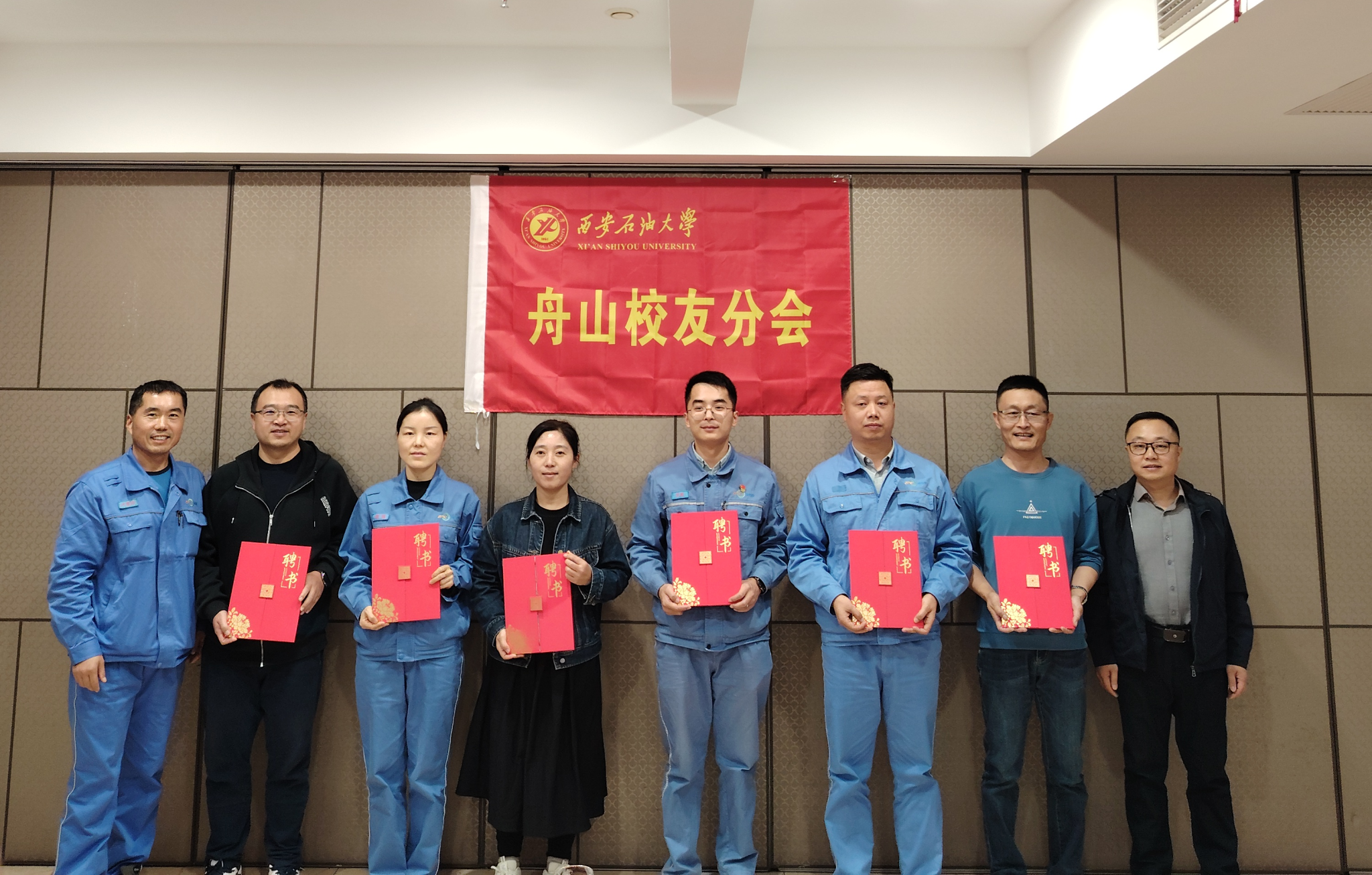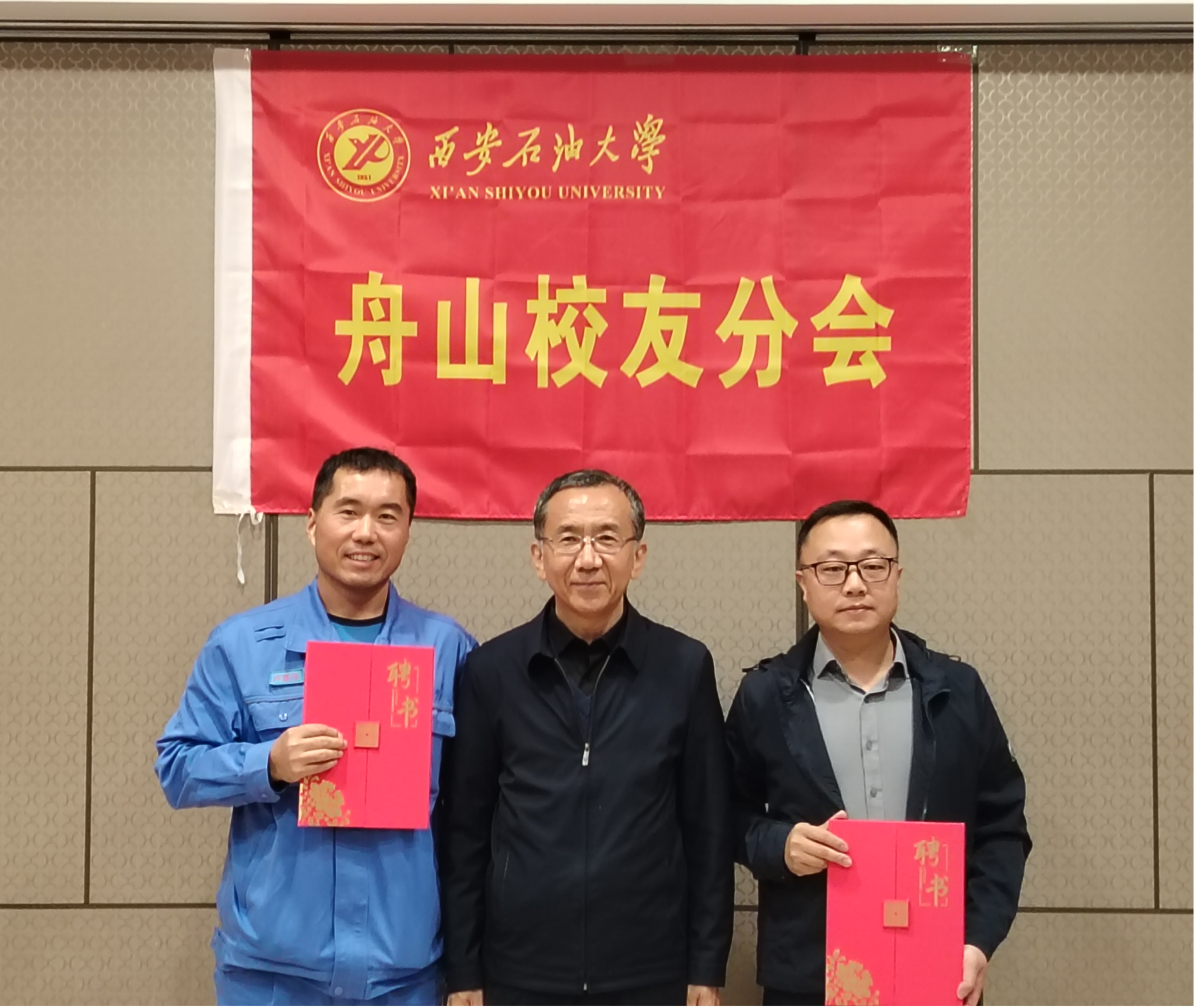 會(huì)上,張木向舟山校友分會(huì)會(huì)長(zhǎng)、秘書(shū)長(zhǎng)頒發(fā)了聘書(shū);張榮軍向舟山校友分會(huì)授牌;覃彪宣讀了《關(guān)于成立西安石油大學(xué)舟山校友分會(huì)的批復(fù)》。盧喜洋向舟山校友分會(huì)副會(huì)長(zhǎng)和副秘書(shū)長(zhǎng)頒發(fā)了聘書(shū)。我校2008屆化學(xué)工程與工藝專(zhuān)業(yè)校友代兵代表舟山校友分會(huì)籌委會(huì)作了籌備工作報(bào)告。