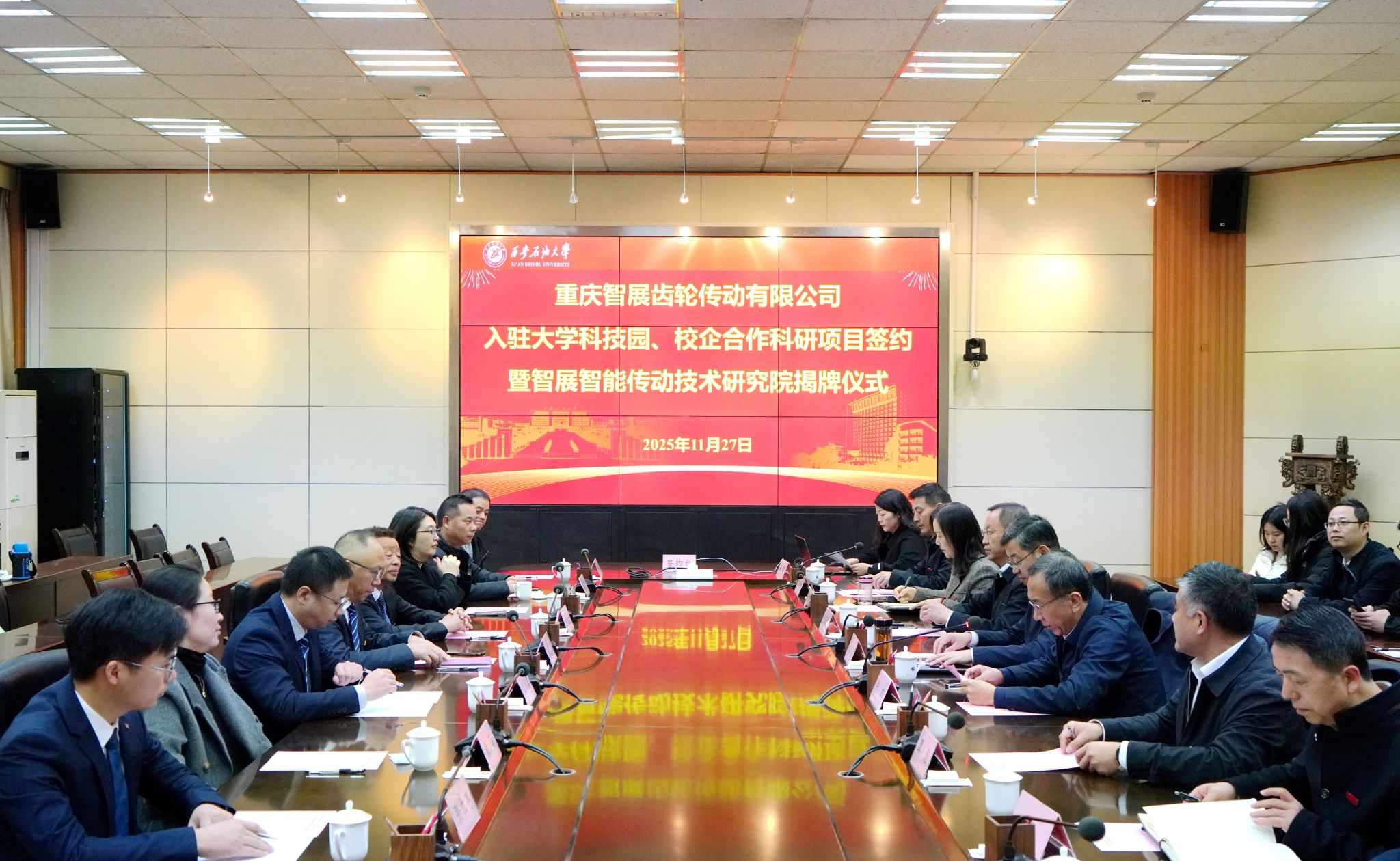 11月27日上午,我校在雁塔校區(qū)會議中心第二會議室舉行重慶智展齒輪傳動有限公司(以下簡稱智展公司)入駐大學(xué)科技園、校企合作科研項目簽約暨智展智能傳動技術(shù)研究院揭牌儀式。校長王進富,副校長張榮軍出席儀式。智展公司董事長、我校校友何榮一行11人,學(xué)校相關(guān)職能部門負責(zé)人,機械工程學(xué)院黨政領(lǐng)導(dǎo)及師生代表參加活動。儀式由校黨委副書記張木主持。