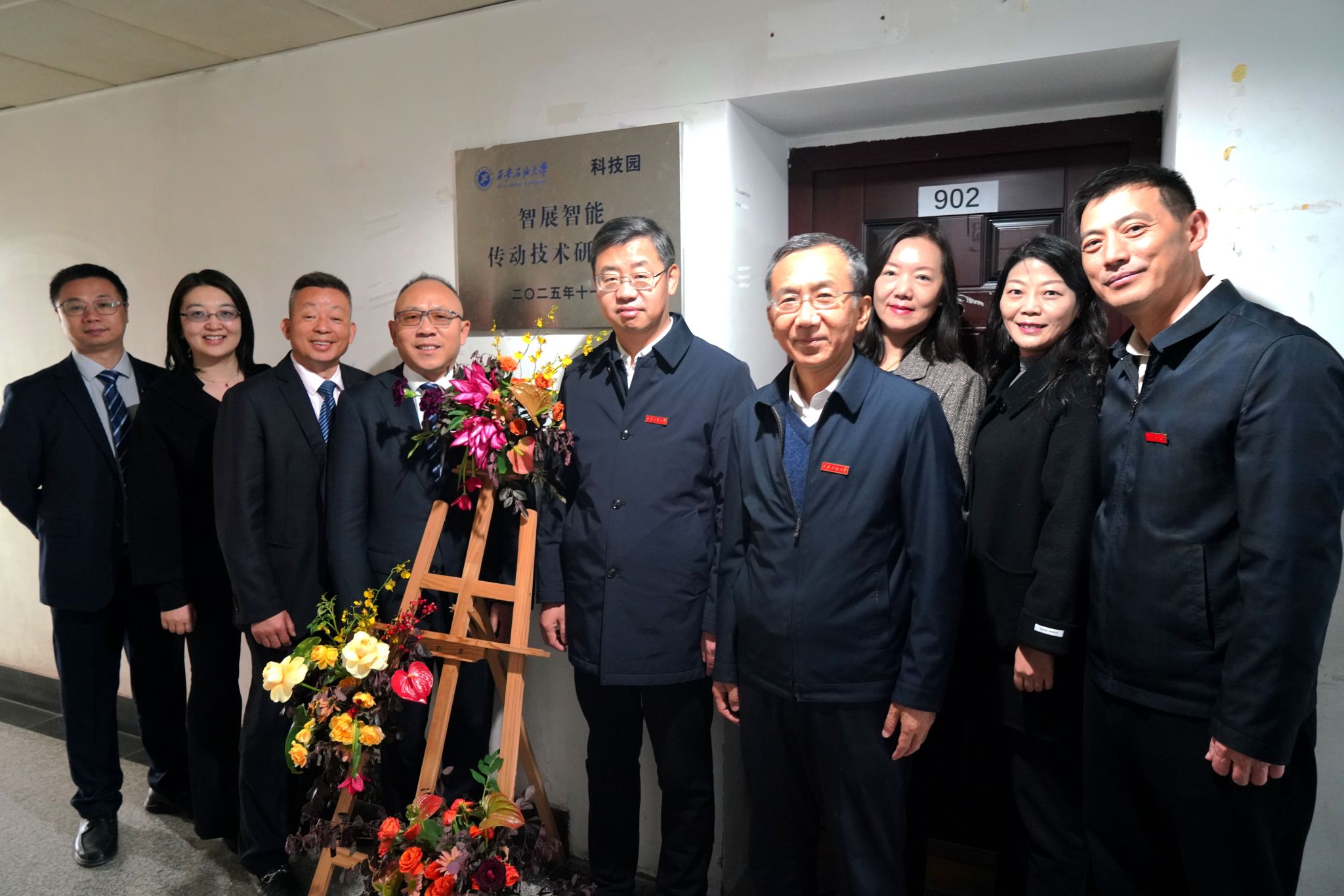 儀式最后,智展智能傳動技術(shù)研究院揭牌儀式在東方石油樓舉行,王進富校長與何榮董事長共同為入駐單位揭牌。