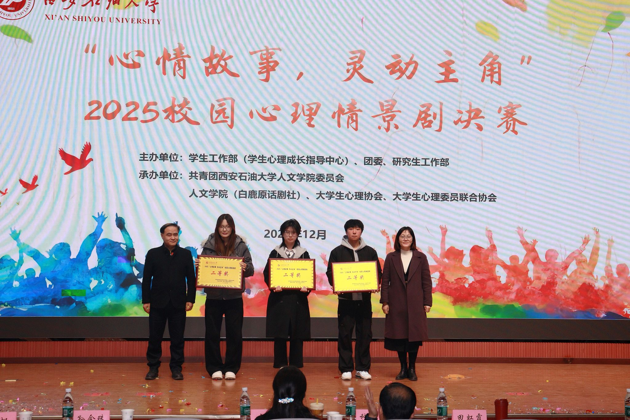 最終,人文學(xué)院(白鹿原話劇社)《金繕》獲得一等獎(jiǎng),石油工程學(xué)院《堅(jiān)守與誘禍》、新能源學(xué)院《非我之我》和地球科學(xué)與工程學(xué)院《斷層上的橋梁》獲得二等獎(jiǎng),馬克思主義學(xué)院《“紙枷”》、經(jīng)濟(jì)管理學(xué)院《燈火重明》、管道工程學(xué)院《心之所向,素履以往》和計(jì)算機(jī)學(xué)院《優(yōu)秀標(biāo)簽的“詛咒”》獲得三等獎(jiǎng)。
