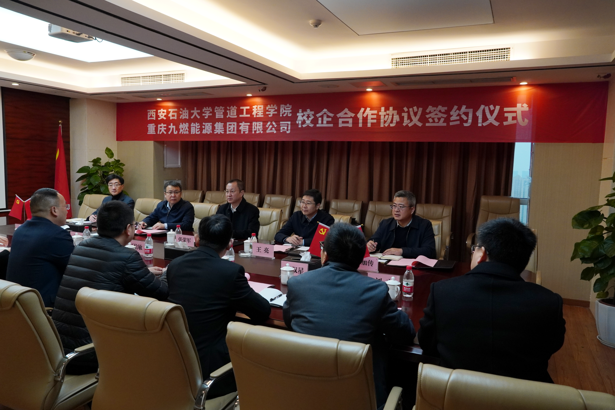 為促進(jìn)我校產(chǎn)學(xué)研協(xié)同發(fā)展與企業(yè)需求精準(zhǔn)對(duì)接,實(shí)現(xiàn)資源共享與優(yōu)勢互補(bǔ),12月22日,副校長張榮軍帶隊(duì)赴重慶九燃能源集團(tuán)有限公司(以下簡稱“九燃能源集團(tuán)”)交流座談,并代表學(xué)校與集團(tuán)簽署校企合作框架協(xié)議,九燃能源集團(tuán)董事長江信敏及相關(guān)部門負(fù)責(zé)人出席活動(dòng)。雙方圍繞課題研究、專業(yè)建設(shè)、人才培養(yǎng)、學(xué)生實(shí)習(xí)就業(yè)、員工繼續(xù)教育與培訓(xùn)等方面展開深入交流。