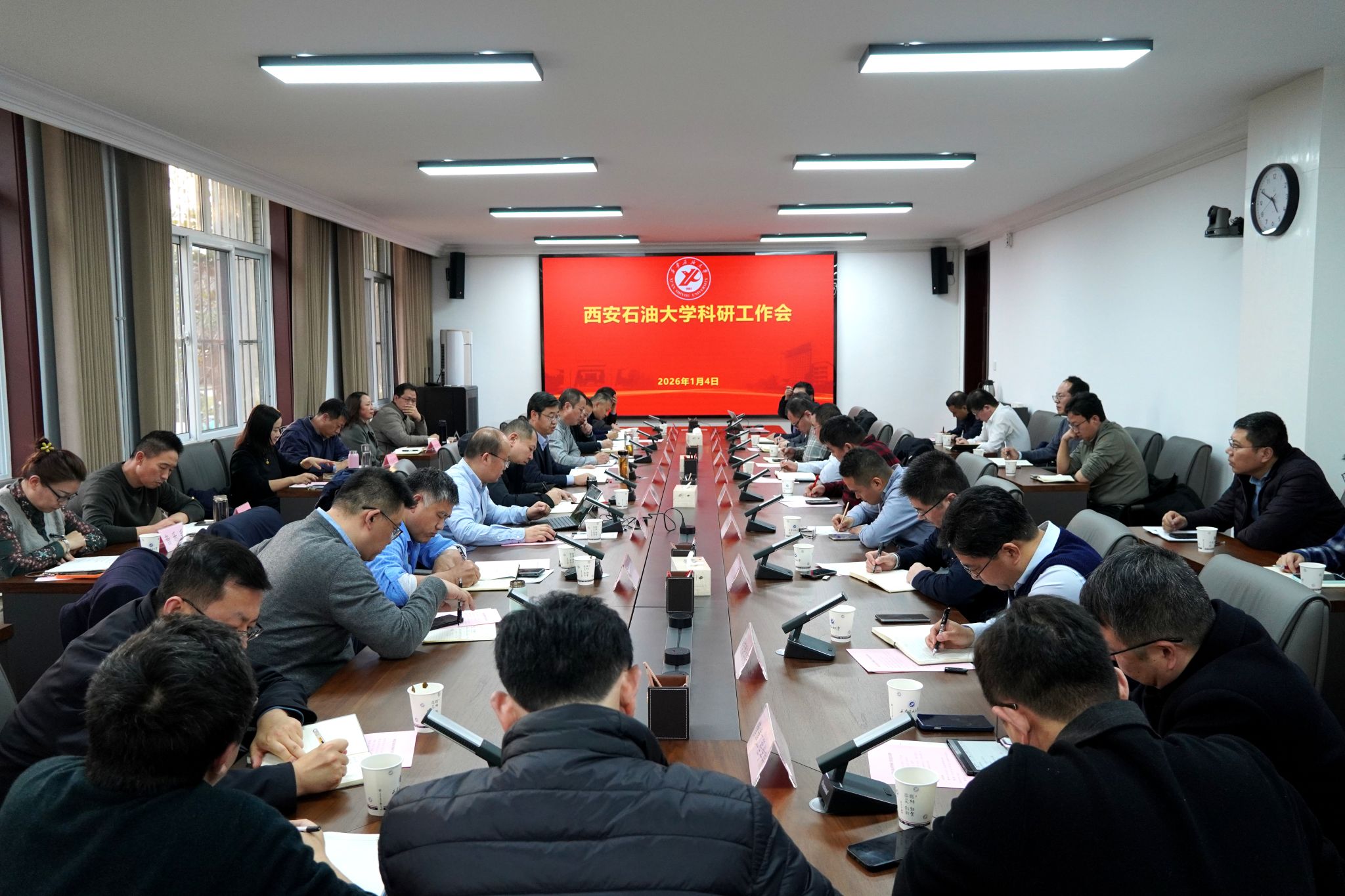 王進(jìn)富作總結(jié)講話,他對(duì)學(xué)校2025年科研創(chuàng)新工作成效表示充分肯定,對(duì)各院(系)的辛勤付出表示衷心感謝,對(duì)下一步科研工作提出具體要求。一要統(tǒng)一思想。2025年度科研創(chuàng)新工作邁上新臺(tái)階,提振了全??蒲泄ぷ髡叩男判?。要進(jìn)一步統(tǒng)一思想,持續(xù)強(qiáng)化有組織的科研,改革各種機(jī)制體制問(wèn)題,確?!笆逦濉币?guī)劃取得良好開(kāi)局。二要正視問(wèn)題。“十四五”期間,學(xué)??蒲幸?guī)模與層次顯著提升,標(biāo)志性成果不斷涌現(xiàn),但是面對(duì)行業(yè)競(jìng)爭(zhēng)和資源短缺,學(xué)校科研工作還存在不足。第一,有組織科研亟待加強(qiáng),具體表現(xiàn)在大項(xiàng)目不夠多,跨學(xué)科大團(tuán)隊(duì)的協(xié)作不夠,科研生態(tài)還需進(jìn)一步優(yōu)化,因此要從學(xué)校的政策層面、評(píng)價(jià)層面、管理層面等持續(xù)發(fā)力。第二,青年科研骨干成長(zhǎng)體系亟待優(yōu)化,青年教師作為學(xué)校科研工作的主力軍和后備力量,要通過(guò)大科研項(xiàng)目培養(yǎng)青年科研骨干,在政策創(chuàng)新上支持青年教師主體作用發(fā)揮和未來(lái)科研力量培育。第三,學(xué)科轉(zhuǎn)化優(yōu)勢(shì)亟待提升,學(xué)校作為行業(yè)特色鮮明的省屬高水平大學(xué),主干學(xué)科必須要找到自身的獨(dú)特優(yōu)勢(shì),通過(guò)有組織的方式來(lái)不斷凝練和培育科研特色方向和優(yōu)勢(shì)領(lǐng)域。三要謀劃未來(lái)。第一,強(qiáng)化有組織科研,優(yōu)化公關(guān)模式。區(qū)域上重點(diǎn)突出鄂爾多斯盆地,關(guān)注延長(zhǎng)和長(zhǎng)慶等重點(diǎn)領(lǐng)域,打破學(xué)科壁壘,形成跨學(xué)科、跨專業(yè)的科研團(tuán)隊(duì)。第二,深化科研政策改革,營(yíng)造良好的創(chuàng)新生態(tài)。首先創(chuàng)新思路,從科研合作組織的層面上,要改變傳統(tǒng)單兵作戰(zhàn)和科研合作模式;其次創(chuàng)新政策,科研管理部門要不斷強(qiáng)化資源配置,多途徑調(diào)動(dòng)科研工作者積極性;再次,創(chuàng)新組織和創(chuàng)新評(píng)價(jià),要不斷改革人事制度和人才政策,強(qiáng)化科研大項(xiàng)目的引領(lǐng)作用,激活個(gè)體的動(dòng)力和活力。第三,深化開(kāi)放合作,拓展科研格局。要不斷深化國(guó)際開(kāi)放合作,持續(xù)開(kāi)放辦學(xué),與龍頭企業(yè)開(kāi)展實(shí)質(zhì)合作,共建國(guó)家級(jí)平臺(tái)、共同承辦國(guó)際會(huì)議等,充分依托學(xué)校國(guó)際合作辦學(xué)的優(yōu)勢(shì),積極開(kāi)展國(guó)際科研合作。王進(jìn)富最后強(qiáng)調(diào),2026年是“十五五”規(guī)劃的開(kāi)局之年,科研工作要更加聚焦“兩深一非一老”油氣勘探開(kāi)發(fā)主戰(zhàn)場(chǎng),緊密服務(wù)國(guó)家重大戰(zhàn)略需求和區(qū)域經(jīng)濟(jì)社會(huì)發(fā)展。立足學(xué)校自身發(fā)展定位,緊密對(duì)接產(chǎn)業(yè)需求,推動(dòng)產(chǎn)業(yè)和科技創(chuàng)新協(xié)同發(fā)展,激發(fā)教師科研創(chuàng)新的動(dòng)力與潛力。