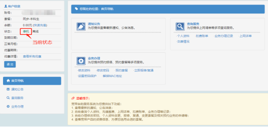 4.因繳費(fèi)或復(fù)通后,系統(tǒng)會(huì)立即執(zhí)行賬號(hào)當(dāng)前的套餐標(biāo)準(zhǔn),因此,狀態(tài)為“停機(jī)”的用戶(hù),一定要先預(yù)約成功再繳費(fèi)或復(fù)通,狀態(tài)為“正常”的用戶(hù),一定要在新套餐生效后再行繳費(fèi),以免引起爭(zhēng)議。