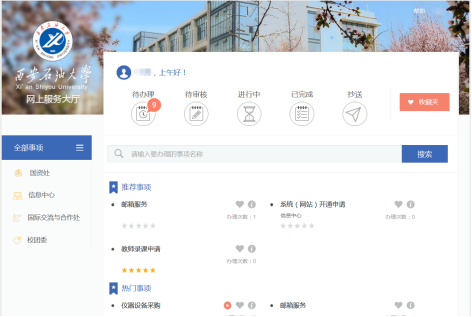 已安裝“i西石大” APP的師生,登錄成功后,通過點擊“首頁”->“全部應(yīng)用”->“行政助手”中的“辦事大廳”進入網(wǎng)上服務(wù)大廳,選擇相關(guān)業(yè)務(wù)進行辦理。