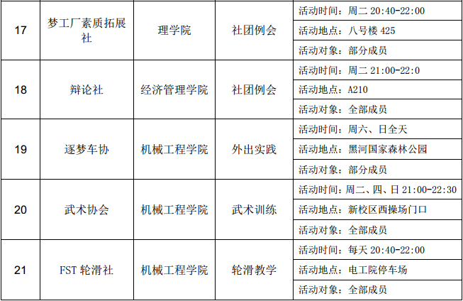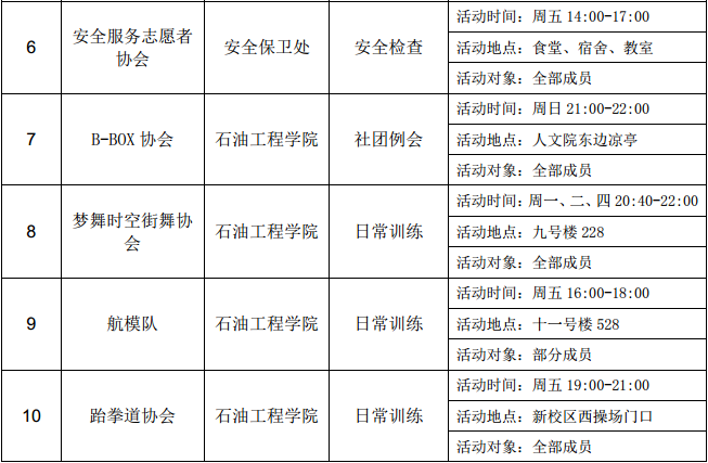 西安石油大學(xué)2016—2017學(xué)年第二學(xué)期第十周社團(tuán)活動(dòng)一覽表