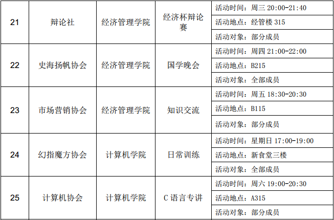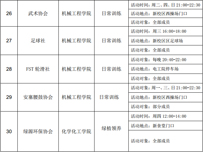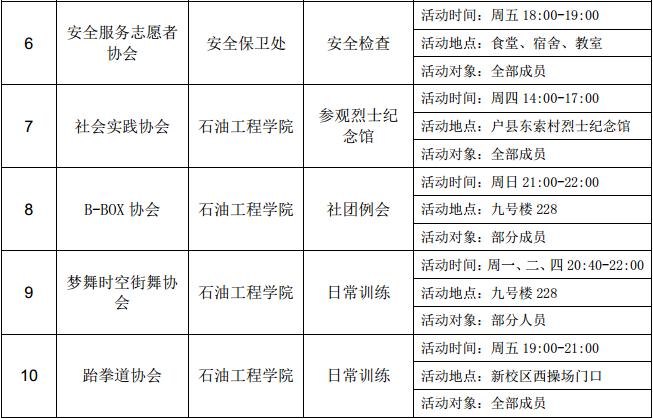 西安石油大學(xué)2016—2017學(xué)年第二學(xué)期第六周社團(tuán)活動(dòng)一覽表