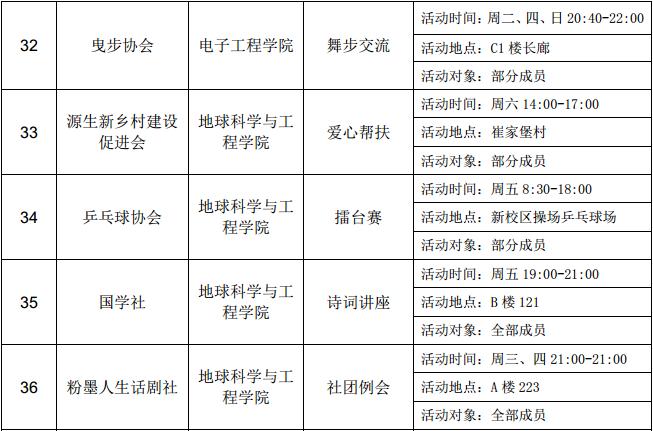 西安石油大學(xué)2016—2017學(xué)年第二學(xué)期第四周社團(tuán)活動一覽表