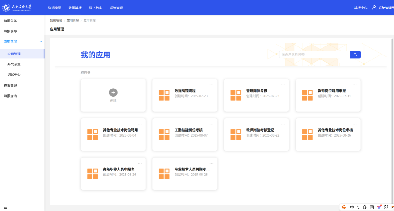 “填報中心”啟用:破解“重復填報”痛點,數(shù)據(jù)共享初見成效。針對師生反映強烈的“重復填報”問題,“填報中心”打造數(shù)據(jù)聚合平臺,以人事考核為突破口,聯(lián)動人事、教務、科研等部門,構建教職工個人數(shù)據(jù)中心。系統(tǒng)已梳理12大類22張業(yè)務子表,完成年終考核、聘期考核、職稱評審等8張核心考核表單的數(shù)字化改造。目前,填報中心已成功對接人事系統(tǒng),支持自定義報表功能開發(fā),滿足各部門個性化數(shù)據(jù)采集需求。后期將隨著教務、科研等學校各類業(yè)務數(shù)據(jù)標準化落地,將全面實現(xiàn)“數(shù)據(jù)一次錄入、全域共享應用”,進一步減輕師生填報負擔。