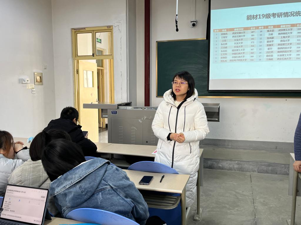 安敏榮從本專業(yè)考研錄取情況、院校選擇、專業(yè)分布等方面為大家進行了考研形勢的分析,她鼓勵同學們要增強考研信心,并建議同學們在新能源領域里能持續(xù)深造,提高自身專業(yè)素養(yǎng),滿足國家和社會對生態(tài)文明建設的人才需求。緊接著,安敏榮結合自身實際和社會發(fā)展強調了考研的重要性,并從報考院校和專業(yè)的選擇、研究生導師的選擇等方面為同學們作了科學分析和指導。