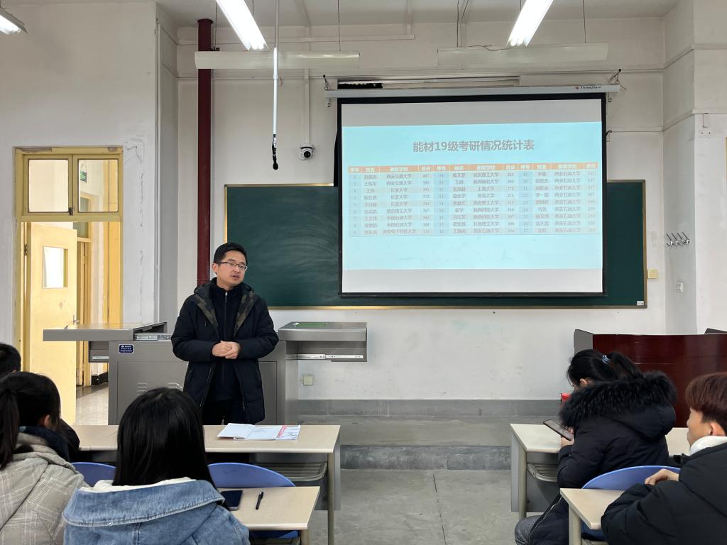 會上,肖美霞作考研就業(yè)動員大會講話,她介紹了上一屆能材專業(yè)的考研就業(yè)情況,鼓勵同學們要基于自身情況,合理地選擇院校,樹立信心并認真準備,不斷提升專業(yè)素養(yǎng),爭取一戰(zhàn)上岸。同時,肖美霞表示,學院非常重視同學們的升學和就業(yè)工作,目前新能源領域就業(yè)前景比較廣泛,大家可以緊密地依托學校和學院提供的就業(yè)平臺,結合自身專業(yè)特色,有針對性地進行自身職業(yè)規(guī)劃。不論是考研還是就業(yè),肖美霞都叮囑同學們要提早動身、合理安排、盡早謀劃,爭取在大學階段剩余的三個學期里做到有的放矢,為自己的未來奠定良好的基礎。