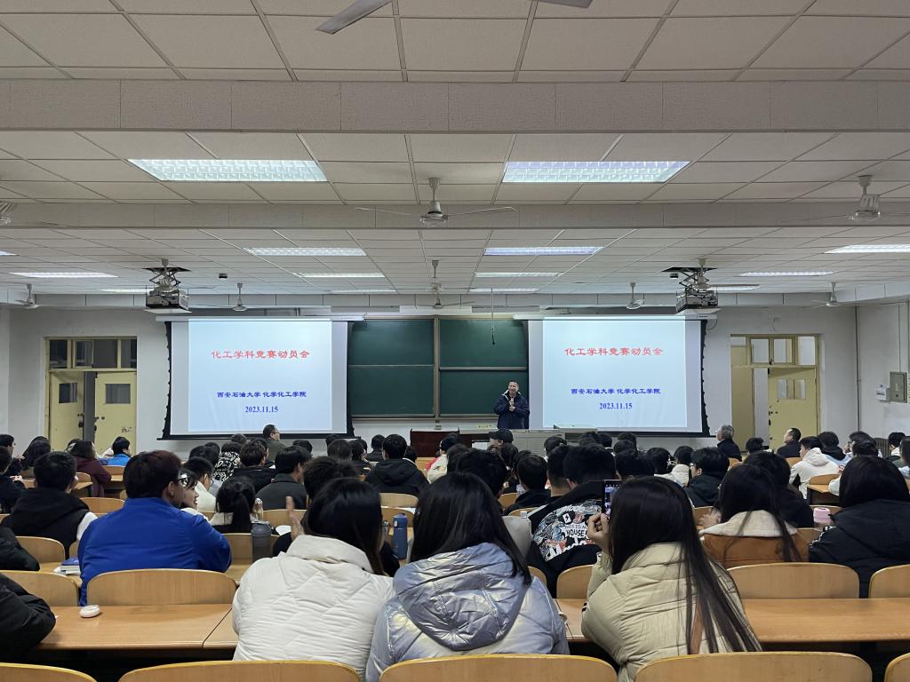 為進(jìn)一步加強(qiáng)人才培養(yǎng)質(zhì)量,提升學(xué)生學(xué)科競賽水平,2023年11月15日晚,化學(xué)化工學(xué)院在鄠邑校區(qū)博覽樓A139教室召開化工學(xué)科競賽動員會。此次活動邀請學(xué)院黨委書記司馬文龍、化工系部分學(xué)科競賽指導(dǎo)教師劉菊榮、范崢、王進(jìn)、唐璇分別主講,由2021級輔導(dǎo)員曹勃和2021級全體本科生參與,化學(xué)工程系主任宋紹富教授主持。