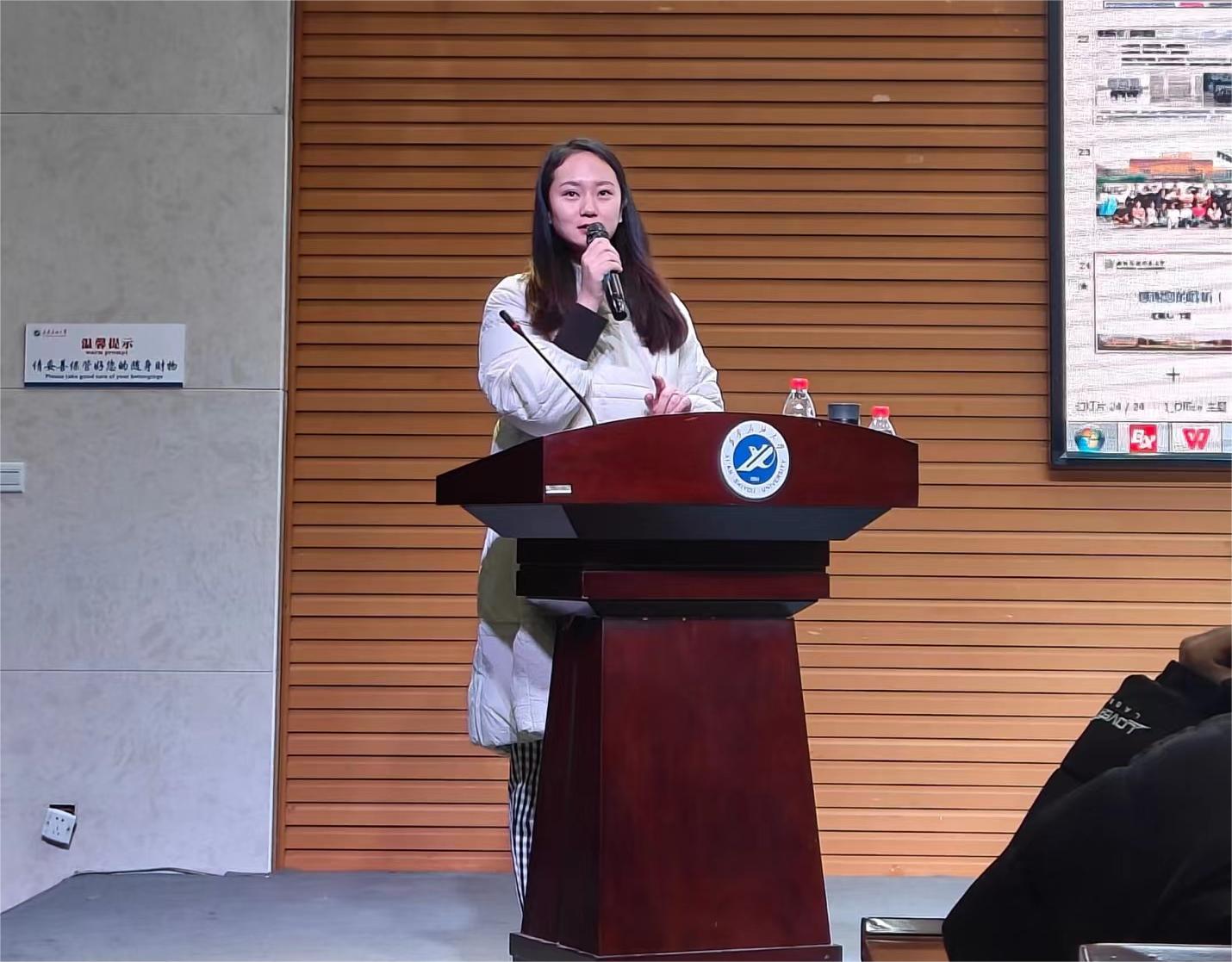 會(huì)議中,丁蕊同學(xué)深情表達(dá)了對(duì)母校深厚的感情,緊接著以“胸中有丘壑,立馬鎮(zhèn)山河”為主題,結(jié)合自身經(jīng)歷,從專業(yè)學(xué)習(xí)、能力培養(yǎng)、升學(xué)規(guī)劃、職業(yè)發(fā)展等多個(gè)方面向在場(chǎng)同學(xué)分享了經(jīng)驗(yàn)與心得。她鼓勵(lì)同學(xué)們?cè)诖髮W(xué)期間一定要積極參加學(xué)科競(jìng)賽,要努力提升自我,為后續(xù)保研、考研以及就業(yè)做好準(zhǔn)備。她表示,科研路上,要平穩(wěn)心態(tài)、學(xué)會(huì)堅(jiān)持、敢于嘗試,失敗后要善于反思總結(jié)、積累經(jīng)驗(yàn),積極去面對(duì)問(wèn)題。同時(shí),她展示了在研究生期間的一些學(xué)習(xí)成果,鼓勵(lì)大家要結(jié)合自身實(shí)際盡早做出學(xué)業(yè)規(guī)劃,以便選擇好前進(jìn)的方向。最后,她就現(xiàn)場(chǎng)同學(xué)們提出的關(guān)于如何規(guī)劃時(shí)間、如何參與專業(yè)技能競(jìng)賽、考研考博復(fù)習(xí)等諸多問(wèn)題進(jìn)行了逐一解答。