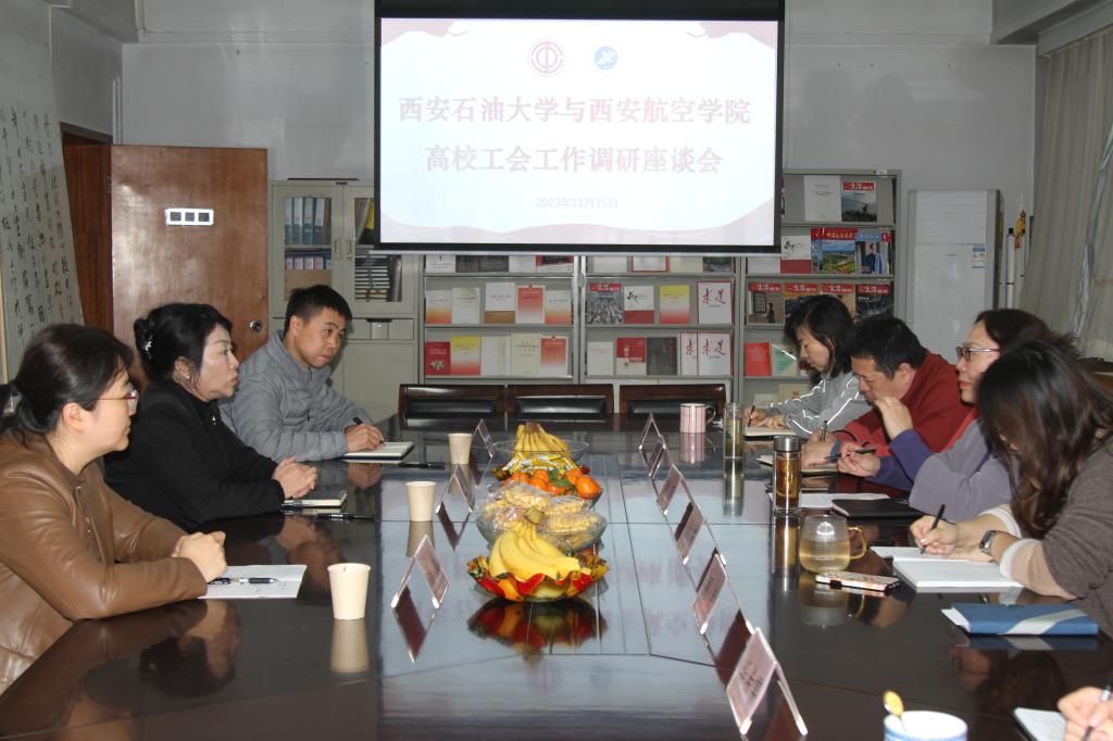 11月15日上午,西安航空學院工會常務副主席陳冬梅一行3人來我校調研高校工會工作,座談會在雁塔校區(qū)工會樓310會議室召開。校工會主席袁玎主持座談會,工會全體人員參加了座談。