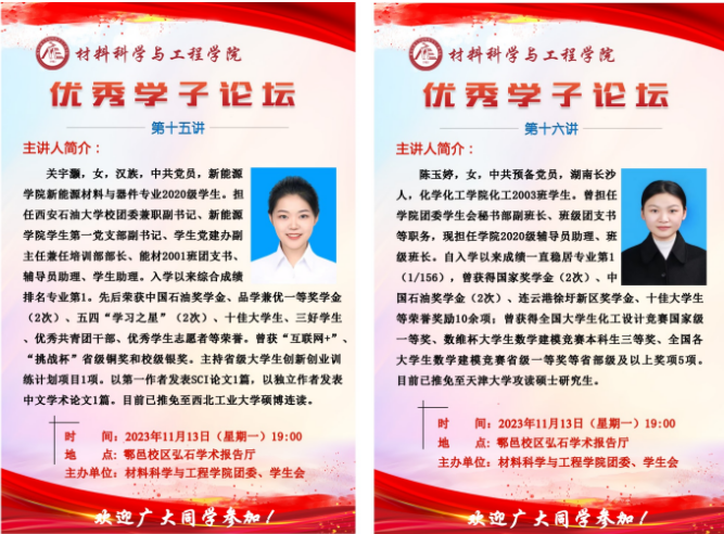 材料科學(xué)與工程學(xué)院舉辦優(yōu)秀學(xué)子論壇第十五講和第十六講