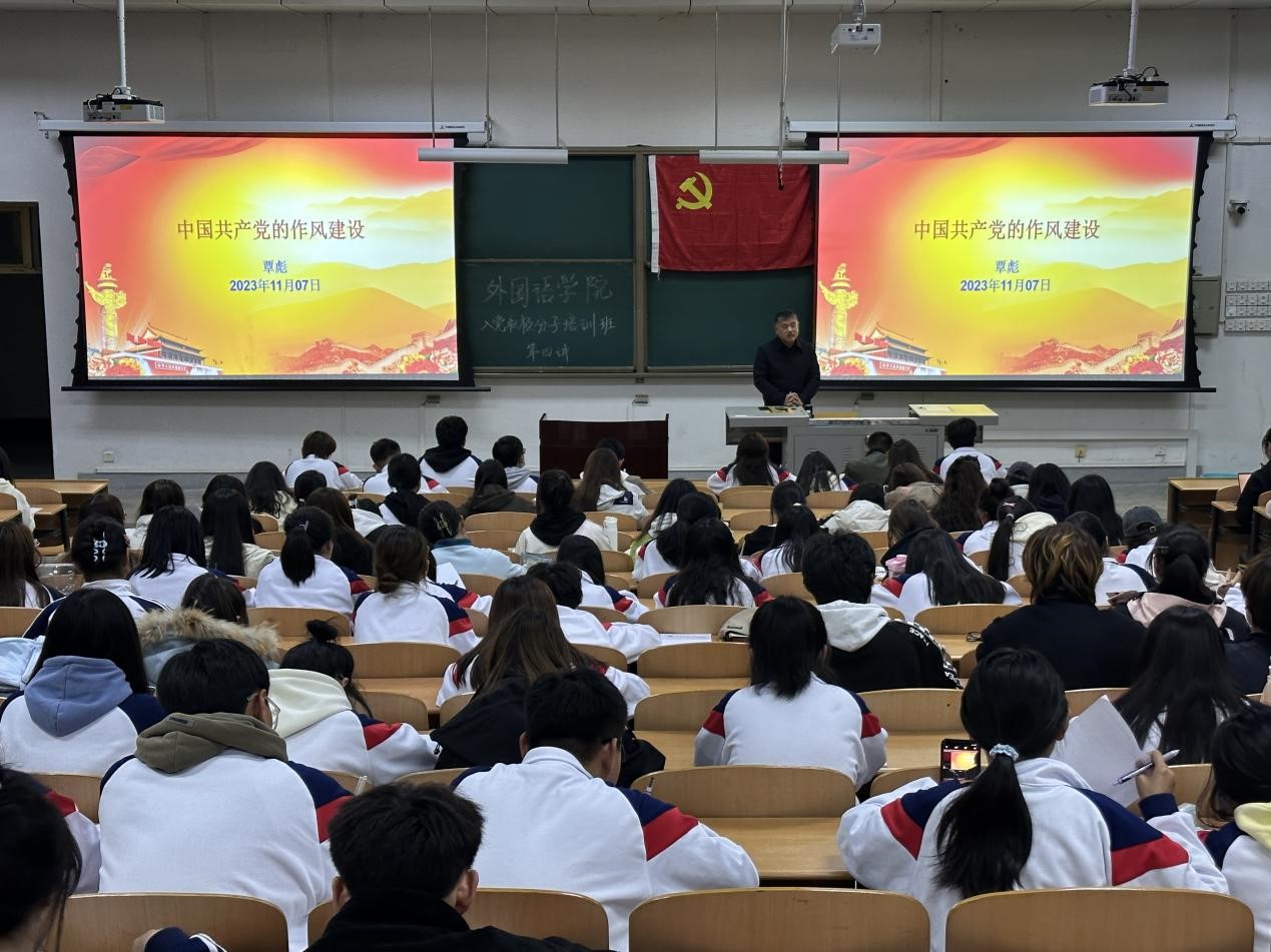 11月7日,外國(guó)語學(xué)院在鄠邑校區(qū)博覽樓234教室舉行第十二期入黨積極分子培訓(xùn)班第四次集中授課。校黨委巡察工作辦公室主任覃彪2023年入黨積極分子授課。