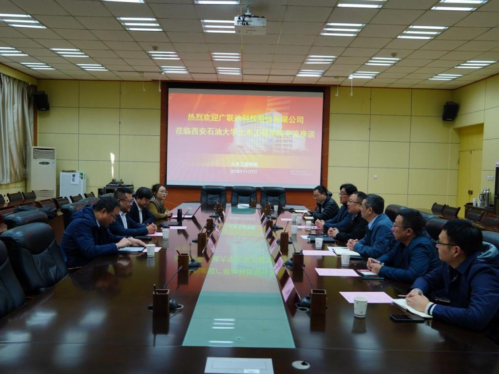 陳濤書記代表土木工程學(xué)院對(duì)雷鵬副總裁一行來(lái)訪表示熱烈歡迎,并邀請(qǐng)雙方共同觀看西安石油大學(xué)宣傳片。李俊亭副院長(zhǎng)介紹了學(xué)?;厩闆r,并就土木工程學(xué)院學(xué)科專業(yè)設(shè)置、師資隊(duì)伍、人才培養(yǎng)特色、未來(lái)發(fā)展方向等方面進(jìn)行了介紹。他表示,學(xué)院工程管理專業(yè)自創(chuàng)辦之初就與廣聯(lián)達(dá)公司開展了相關(guān)業(yè)務(wù)合作,雙方聯(lián)系緊密,廣聯(lián)達(dá)近年來(lái)深耕數(shù)字建筑、智能建造的發(fā)展定位為雙方提供了更廣闊的合作空間,希望以本次交流為契機(jī)進(jìn)一步創(chuàng)新合作機(jī)制,在雙方產(chǎn)教融合業(yè)務(wù)中充分發(fā)揮雙方自身優(yōu)勢(shì),在專業(yè)建設(shè)、本科生就業(yè)實(shí)習(xí)基地建設(shè)、校企聯(lián)合參與學(xué)科競(jìng)賽、研究生聯(lián)合培養(yǎng)基地建設(shè)、實(shí)驗(yàn)室共建等方面深化合作,實(shí)現(xiàn)互利共贏。