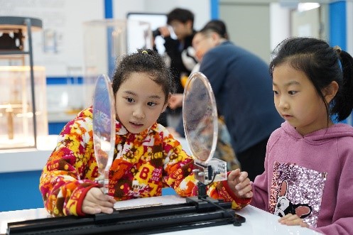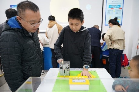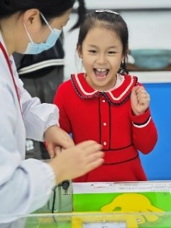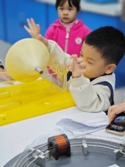 活動(dòng)當(dāng)天,家長(zhǎng)和小朋友們?cè)趯W(xué)生志愿者的組織引導(dǎo)下有序地參觀了各個(gè)實(shí)驗(yàn)室。教師志愿者對(duì)演示實(shí)驗(yàn)項(xiàng)目的原理、操作方法和注意事項(xiàng)進(jìn)行了詳細(xì)的講解和演示,引導(dǎo)小朋友們認(rèn)真觀察實(shí)驗(yàn)現(xiàn)象、提出問(wèn)題、主動(dòng)探索,并指導(dǎo)大家親身體驗(yàn)各個(gè)實(shí)驗(yàn)項(xiàng)目。其中特斯拉放電、茹科夫斯基轉(zhuǎn)椅、錐體上滾、清潔能源、GPS全球定位系統(tǒng)演示儀、彩色影子等項(xiàng)目給大家留下了深刻的印象。在VR實(shí)驗(yàn)室,大家可以親身體驗(yàn)虛擬現(xiàn)實(shí)技術(shù),感受科技的魅力。活動(dòng)為參觀者僅打開(kāi)了切身體驗(yàn)科學(xué)知識(shí)的窗口,領(lǐng)略到物理的魅力和科技的創(chuàng)新,也培養(yǎng)了孩子們樹(shù)立探索科學(xué)奧秘,立志科學(xué)報(bào)國(guó)的理想。