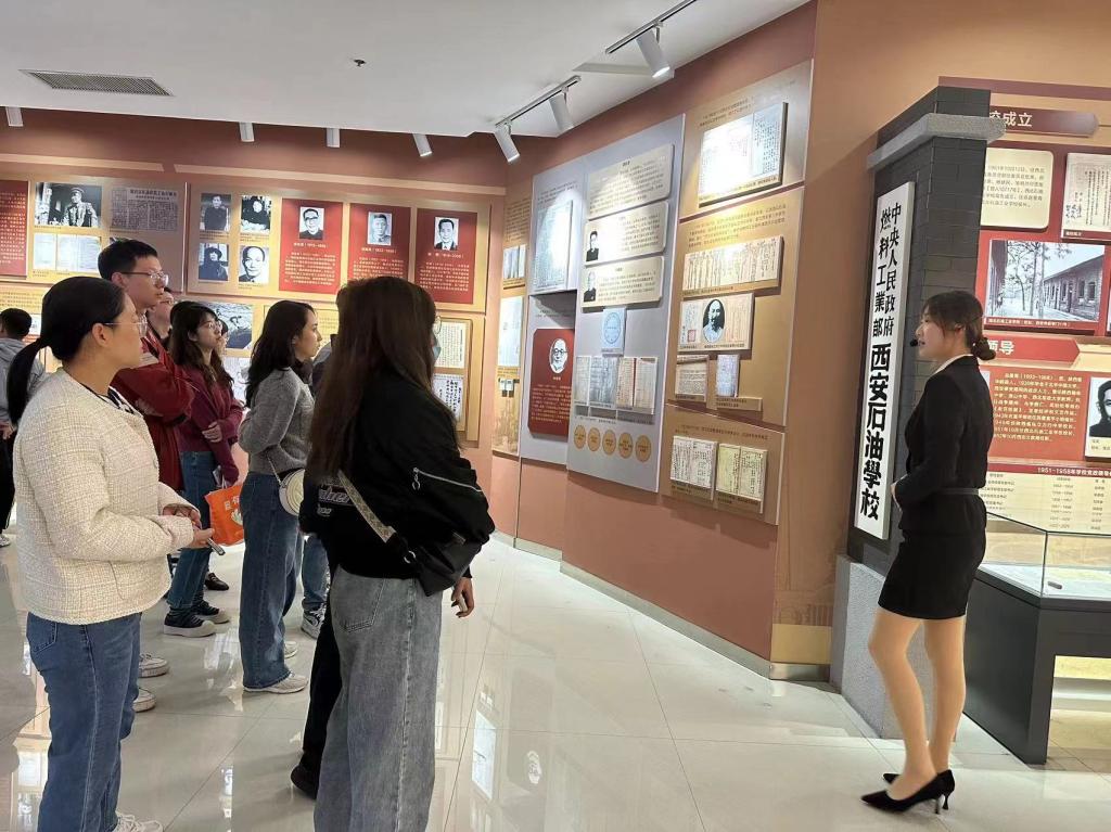 我校鐵人紀念館是國內最早紀念鐵人王進喜的紀念館之一,也是國內第一所石油高校建設的以紀念、弘揚、發(fā)展鐵人精神為目的的紀念館。新入職教師分組在館內進行參觀,認真傾聽講解員講述鐵人生前的光輝事跡。通過展出的文物、圖片、場景還原等實物展示,使新入職教師們深入了解了王進喜和以他為代表的“鐵人精神”的誕生背景及其在新中國石油工業(yè)建設進程中所扮演的重要角色。