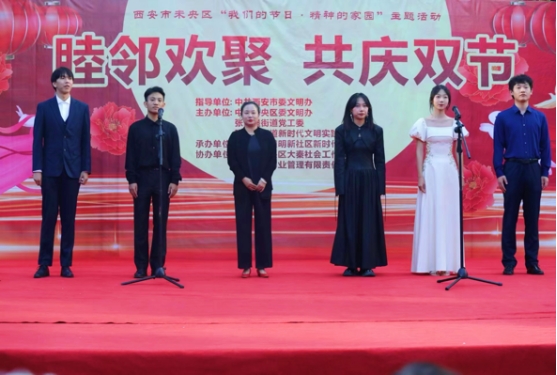 隨著中秋節(jié)和國(guó)慶節(jié)的到來(lái),926日,受西安市未央?yún)^(qū)張家堡街道辦的邀請(qǐng),音樂(lè)系師生一行8人赴張家堡街道辦明新社區(qū)舉行了一場(chǎng)睦鄰歡聚共慶雙節(jié)”的高雅藝術(shù)進(jìn)社區(qū)音樂(lè)之夜活動(dòng)。主題活動(dòng)由音樂(lè)系張欣副教授帶領(lǐng)音樂(lè)系學(xué)子走進(jìn)社區(qū),展現(xiàn)音樂(lè)的魅力,讓社區(qū)居民在音樂(lè)的陶冶下放松身心,減輕壓力,提高工作和生活的質(zhì)量。