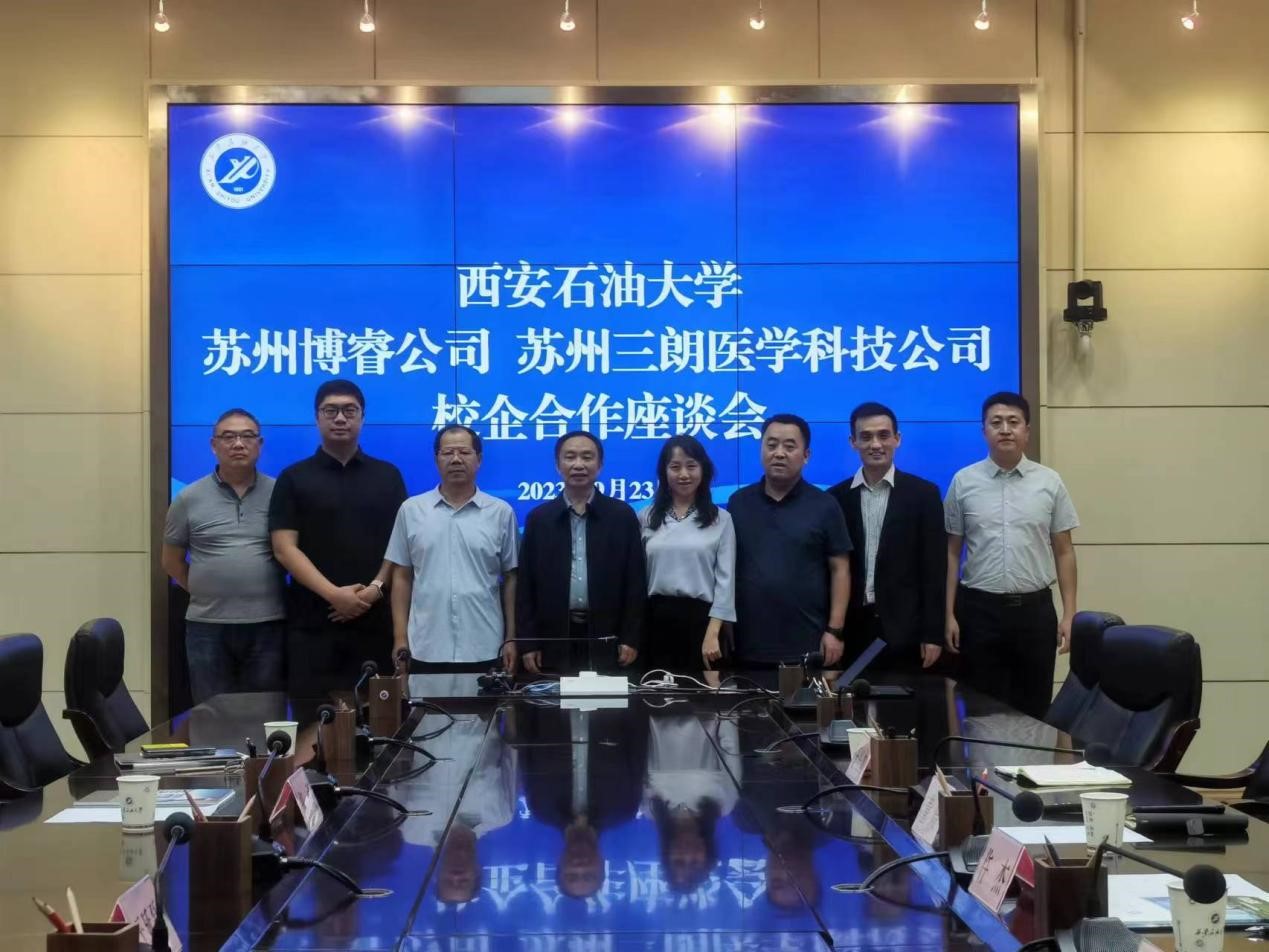 9月23日下午,我校與蘇州博睿測(cè)控設(shè)備有限公司 、蘇州三朗醫(yī)學(xué)科技公司在雁塔校區(qū)學(xué)術(shù)會(huì)議中心第二會(huì)議室舉行校企合作座談會(huì)。蘇州博睿測(cè)控設(shè)備有限公司董事長(zhǎng)鄭勇、總經(jīng)理李偉華、海外事業(yè)部經(jīng)理李昕知,蘇州三朗醫(yī)學(xué)科技有限公司股東、監(jiān)事王延磊,我校國(guó)際教育學(xué)院、電子工程學(xué)院主要負(fù)責(zé)人及相關(guān)人員參加座談。