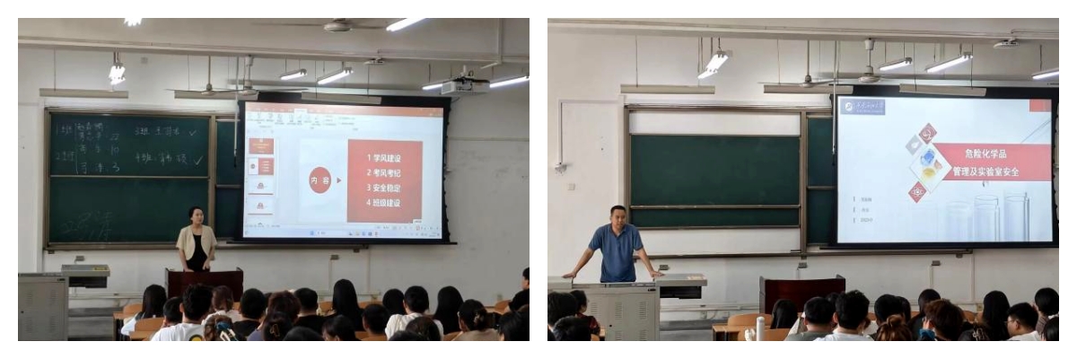 會(huì)議伊始,蔣勝老師代表全院師生熱情歡迎了146名研究生新生加入到西安石油大學(xué)大學(xué)化學(xué)化工學(xué)院的大家庭,她向同學(xué)們?cè)敿?xì)講解了研究生入學(xué)后的師生雙選工作的注意事項(xiàng),對(duì)各個(gè)專業(yè)進(jìn)行了簡(jiǎn)單介紹,表達(dá)了殷殷囑托;馮旭亮老師對(duì)研究生培養(yǎng)方案的制定進(jìn)行了詳細(xì)介紹,包括課程學(xué)分、選課要求等;賈新剛老師帶領(lǐng)同學(xué)們?cè)茀⒂^了西安石油大學(xué)現(xiàn)代分析檢測(cè)中心,并通過實(shí)驗(yàn)室發(fā)生的真實(shí)事故案例,講解了危險(xiǎn)化學(xué)品的如何管理以及實(shí)驗(yàn)室安全的重要性,提高了同學(xué)們的安全意識(shí)。最后,2023級(jí)研究生輔導(dǎo)員王蓉從學(xué)風(fēng)建設(shè)、考風(fēng)考紀(jì)、安全穩(wěn)定及班級(jí)建設(shè)等四個(gè)方面對(duì)同學(xué)們進(jìn)行了入學(xué)教育,她提出了三點(diǎn)希望:一是希望同學(xué)們明確目標(biāo)、虛心好學(xué)、培養(yǎng)獨(dú)立的科學(xué)思維能力;二是希望同學(xué)們努力拼搏,堅(jiān)持不懈,培養(yǎng)吃苦耐勞和勇于攀登的品質(zhì);三是希望同學(xué)們主動(dòng)交流、勇于開拓,培養(yǎng)溝通和表達(dá)自己的能力。