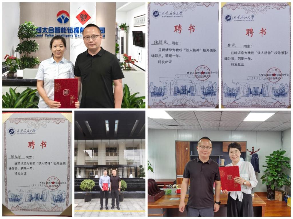 走訪期間,王剛分別與中鐵建工西安地鐵6號線項目書記張紅琴,正大集團西北區(qū)財務總監(jiān)張鵬(2009級校友),陜西太合智能鉆探有限公司財務總監(jiān)李歡(2005級校友),陜西太合智能鉆探有限公司人力資源部長魏院院(2010級校友)進行交流并頒發(fā)“鐵人精神”校外兼職輔導員聘書。
