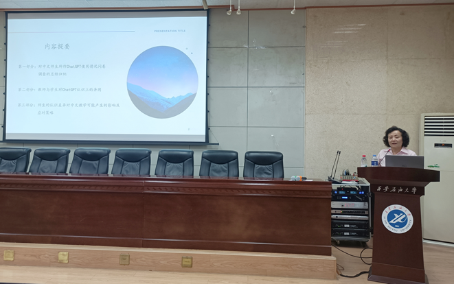 2023年7月1日上午,美國圣路易斯華盛頓大學東亞系梁霞教授在雁塔校區(qū)第三會議室,為全校師生做了“CHATGPT使用情況調(diào)查研究——教師與學生的認識差異及其對中文教學的啟示”講座,并特邀陜西師范大學社科處處長柯西鋼教授一同前來座談,人文學院副院長方松林主持。