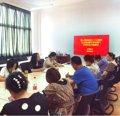 為進一步學習貫徹黨的二十大精神,推進外語本科專業(yè)內(nèi)涵建設(shè),6月26日下午,外國語學院在華油能源樓727召開外語專業(yè)建設(shè)研討會。副院長劉輝作了題為“深入貫徹黨的二十大精神,扎實推進新文科背景下外語專業(yè)內(nèi)涵建設(shè)”的專題黨課,并圍繞外語專業(yè)建設(shè)進行了深入的交流研討。英語系、翻譯系、俄語系三個專業(yè)支部全體黨員及系部主任、副主任、專業(yè)帶頭人、專業(yè)負責人參加了研討會。