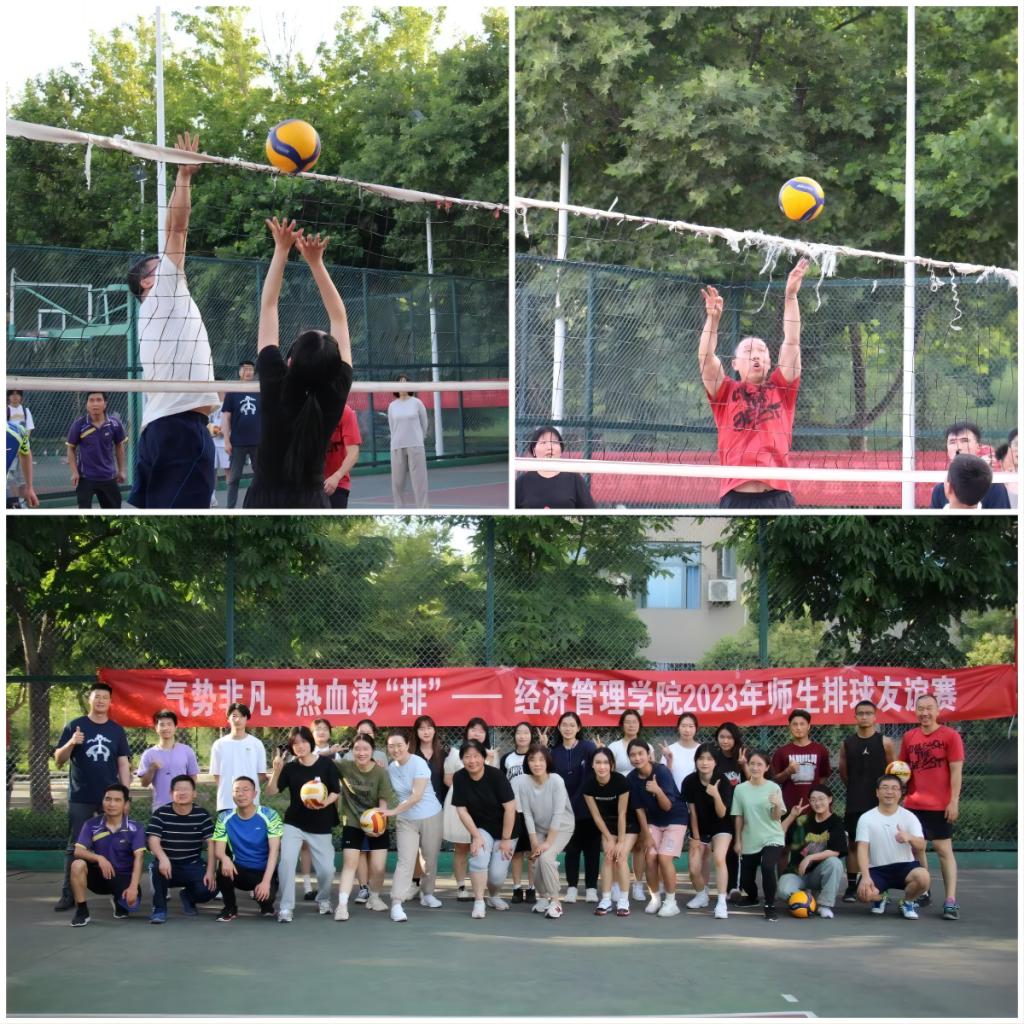 為增強學院師生之間的溝通交流,促進全體師生身心健康,經(jīng)濟管理學院于6月8日舉辦了一場精彩的師生排球友誼賽。來自教師代表隊和學生代表隊的選手們在比賽中展現(xiàn)了頑強的體育精神和出色的技巧,給現(xiàn)場觀眾帶來了一場視覺盛宴。比賽現(xiàn)場,隊員們精神飽滿、拼搏進取,場上場下,同舟共濟,彰顯了團隊協(xié)作的精神風貌。比賽現(xiàn)場不僅有隊員們的熱烈歡呼聲,還有學生們的熱情吶喊和老師們的加油助威聲,現(xiàn)場氣氛熱烈、溫馨。
