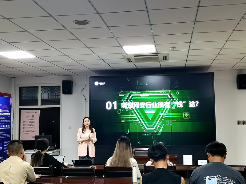 文倩雯和鄧?yán)杌诂F(xiàn)階段的招聘環(huán)境,結(jié)合自身經(jīng)歷向參會學(xué)生介紹了網(wǎng)絡(luò)安全工程師的基本從業(yè)條件及發(fā)展前景,幫助參會學(xué)生了解企業(yè)用人需求,對標(biāo)個人能力更好的樹立學(xué)習(xí)目標(biāo),從而做好踏入職場的準(zhǔn)備。