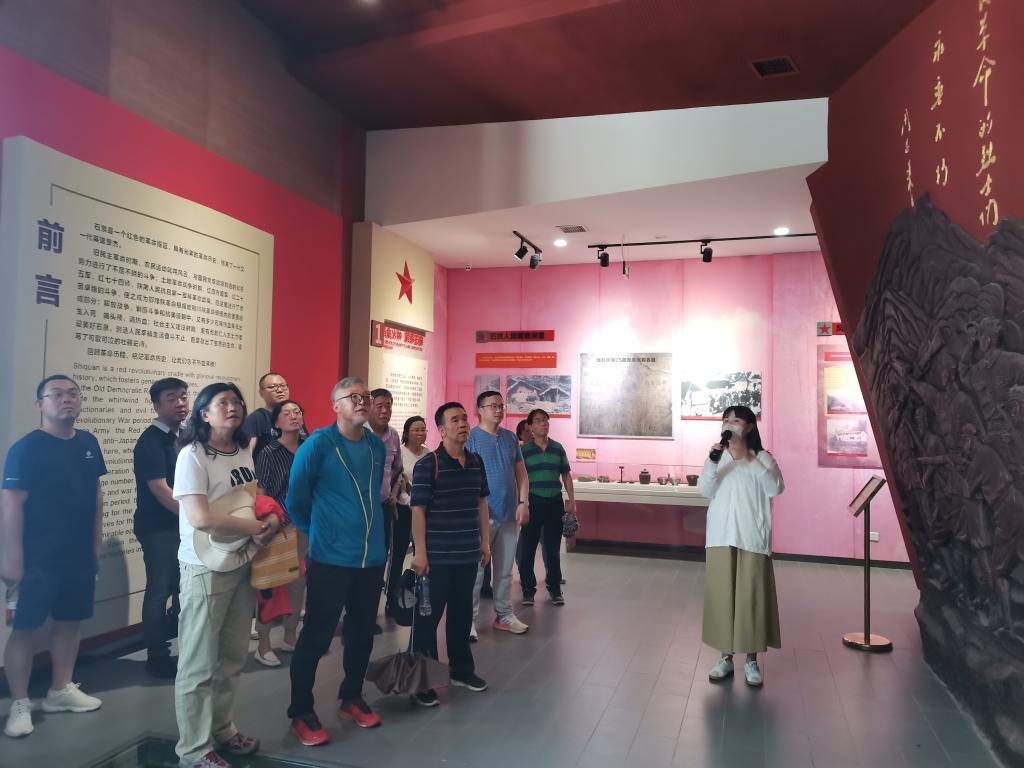 徒步到達位于北辰森林公園內(nèi)的黨性教育基地——石泉革命紀念館之后,在講解員的帶領下,同志們近距離參觀了紀念館設置的三個展廳,通過集體觀看大量珍貴的歷史圖片、文獻資料及抗戰(zhàn)時期留下的實物,共同瞻仰追憶中國革命的歷史背景和艱難歷程,重溫先烈們?yōu)楦锩聵I(yè)浴血奮戰(zhàn)的崢嶸歲月,真切感受他們不屈不撓、英勇抗爭的革命意志和視死如歸的大無畏革命精神。