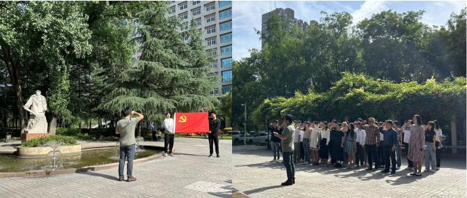 畢業(yè)生文明離校之際,2020級(jí)研究生黨支部以主題教育為主線,進(jìn)行“石油精神”、“鐵人精神”再教育,做好離校前各項(xiàng)工作,組織了次主題黨日活動(dòng)?;顒?dòng)開始全體黨員同志在李超偉老師的帶領(lǐng)下面向黨旗,在鐵人雕像前重溫入黨誓詞,進(jìn)行莊嚴(yán)宣誓:牢記初心使命,堅(jiān)定理想信念,弘揚(yáng)傳承鐵人精神,學(xué)石油,愛石油,奉獻(xiàn)石油,走向工作崗位,創(chuàng)造美好未來,實(shí)現(xiàn)自己的人生價(jià)值。
