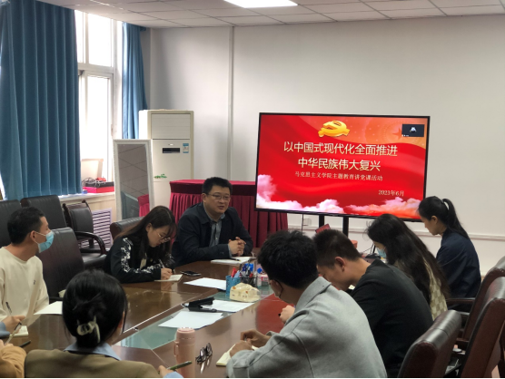 為深入學(xué)習(xí)貫徹習(xí)近平新時(shí)代中國(guó)特色社會(huì)主義思想,深刻學(xué)習(xí)領(lǐng)會(huì)黨的二十大精神,用黨的創(chuàng)新理論統(tǒng)一思想、凝聚共識(shí)、提振精神、激發(fā)干勁,激勵(lì)廣大青年時(shí)刻以歷史主動(dòng)精神涵養(yǎng)建設(shè)中國(guó)式現(xiàn)代化的責(zé)任擔(dān)當(dāng),進(jìn)一步推進(jìn)主題教育走深走實(shí),6月5日上午,馬克思主義學(xué)院院長(zhǎng)張海濤教授在雁塔校區(qū)華油能源樓818會(huì)議室為研究生第一黨支部全體黨員講授了題為《以中國(guó)式現(xiàn)代化全面推進(jìn)中華民族偉大復(fù)興》的專題黨課,黨課由輔導(dǎo)員童玲主持。