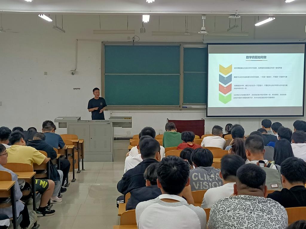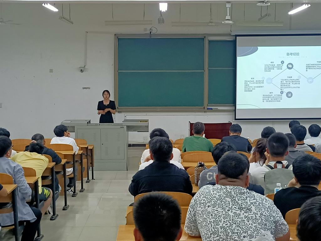 會上,2024屆畢業(yè)生王梓梁、韓雨軒、李毅三位同學結合自身經(jīng)歷,主要從選擇院校、公共課復習技巧、專業(yè)課準備技巧、復試準備、注意事項、心態(tài)調整等多方面給同學們分享了自己的考研經(jīng)驗。