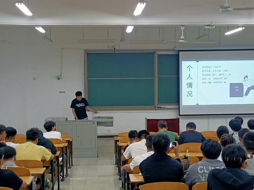 為進一步落實學校有關要求,提前謀劃畢業(yè)生就業(yè)工作,5月30日,土木工程學院在鄠邑校區(qū)博思樓121教室舉辦2024屆畢業(yè)生就業(yè)動員大會暨考研經(jīng)驗交流會。學院2024屆全體同學參加大會,報告會由學工辦主任、2020級本科生輔導員李化杰主持。