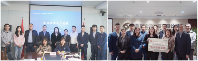 座談會(huì)后,雙方簽訂校企合作協(xié)議,共同為“大學(xué)生實(shí)習(xí)就業(yè)基地”揭牌,并就開(kāi)展校外實(shí)習(xí)、共同做好人才引進(jìn)等校企合作具體事宜進(jìn)行了深入的交流探討。