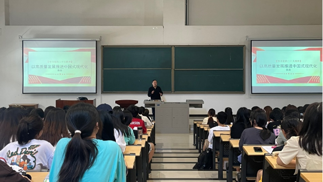 為深入學(xué)習(xí)宣傳貫徹黨的二十大精神,落實(shí)《中共西安石油大學(xué)委員會(huì)關(guān)于認(rèn)真學(xué)習(xí)宣傳貫徹黨的二十大精神的通知》的相關(guān)要求,5月19日上午,外國語學(xué)院組織開展“教學(xué)名師宣講黨的二十大精神”活動(dòng),本次宣講的主題是《學(xué)習(xí)黨的二十大,以高質(zhì)量發(fā)展推進(jìn)中國式現(xiàn)代化》,由省級(jí)教學(xué)名師、三級(jí)教授袁森老師主講,外國語學(xué)院2022級(jí)全體學(xué)生參加。