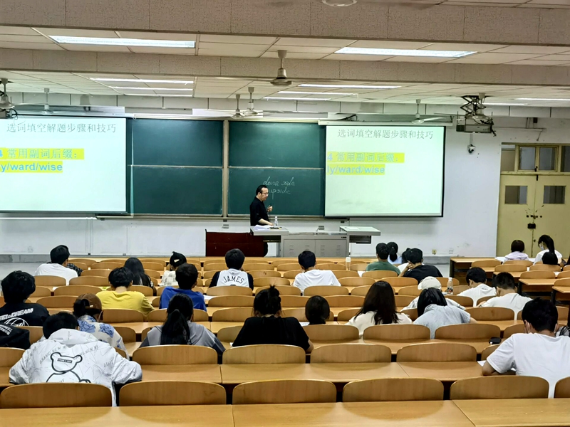 為進(jìn)一步夯實(shí)學(xué)生的英語(yǔ)基礎(chǔ),助力學(xué)生奮戰(zhàn)大學(xué)英語(yǔ)四級(jí)考試,進(jìn)一步提升我院學(xué)生的大學(xué)英語(yǔ)四級(jí)考試的通過(guò)能力,5月17日晚上,計(jì)算機(jī)學(xué)院在博思樓139教室舉辦大學(xué)英語(yǔ)四級(jí)考試沖刺階段培訓(xùn)活動(dòng),本次活動(dòng)邀請(qǐng)好勝教育輔導(dǎo)老師付林主講,2021級(jí)、2022級(jí)部分學(xué)生參加了此次活動(dòng)。