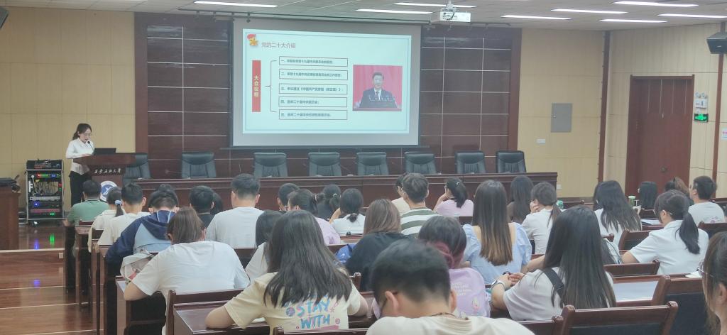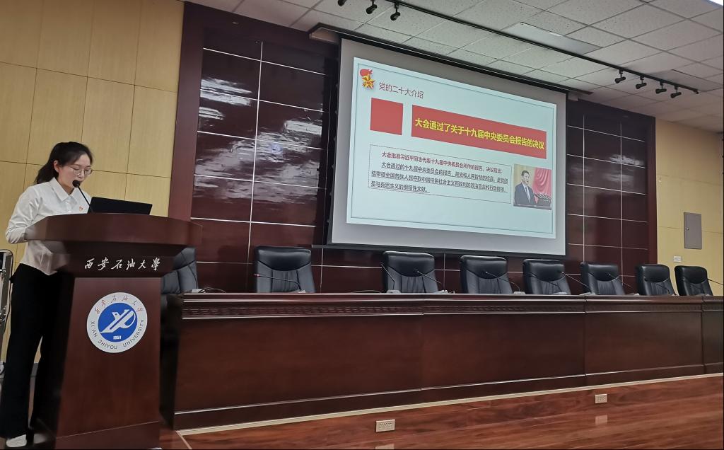 為深入學習宣傳貫徹黨的二十大精神,落實《中共西安石油大學委員會關于認真學習宣傳貫徹黨的二十大精神的通知》,按照黨委研究生工作部相關要求,5月19日下午,化學化工學院在雁塔校區(qū)會議中心第五會議室,開展學習黨的二十大精神系列宣講第二講“學習二十大,永遠跟黨走,奮進新征程”,黨的二十大精神研究生宣講團成員、化學化工學院研究生第四黨支部書記尹興雨同志擔任主講,活動由輔導員李超偉老師主持,化學化工學院全體研究生黨員、預備黨員、發(fā)展對象90余人參加了會議。
