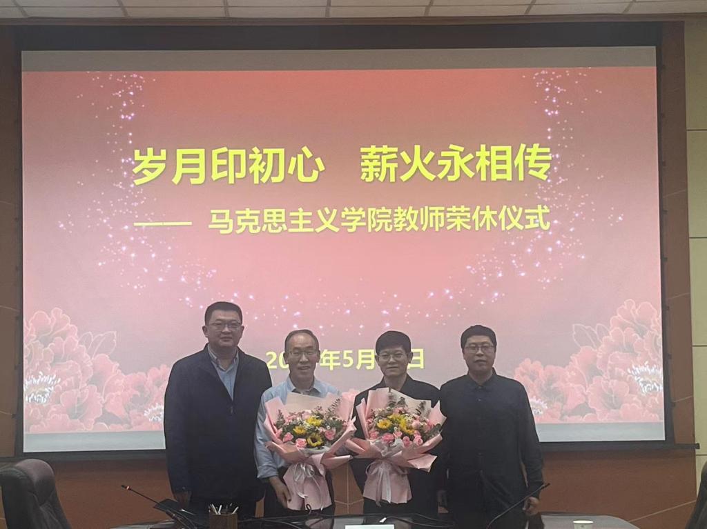 歲月印初心,薪火永相傳。5月12日上午,馬克思主義學院在雁塔校區(qū)西階第一會議室舉行教職工榮休儀式,向2022年光榮退休的教師表達敬意與感謝。學院領(lǐng)導班子成員,榮休教師潘景余、朱銀全以及全體教職工參加。儀式由學院黨總支書記張偉主持。