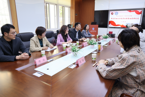 俄語(yǔ)系主任張艷、英語(yǔ)系副主任鄧林、教學(xué)辦公室主任尹曉嬌一同參加授牌儀式。