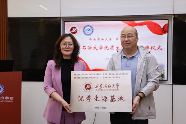 會(huì)上,田虹霞代表學(xué)校與西安太白學(xué)校簽署了《西安石油大學(xué)優(yōu)秀生源基地建設(shè)協(xié)議》,并授予“優(yōu)秀生源基地”牌匾。