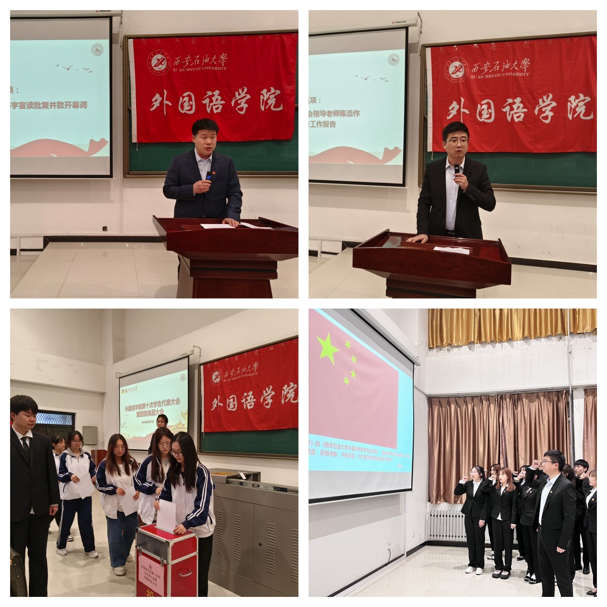 周宇宣讀了校團委《關(guān)于同意召開西安石油大學(xué)外國語學(xué)院第十次學(xué)生代表大會暨團委換屆大會的批復(fù)》,他在開幕詞中說,黨旗所指就是團旗所向,希望各位學(xué)生代表以嚴謹求實態(tài)度,認真履行學(xué)生代表職責(zé),以只爭朝夕不負韶華的緊迫感,努力學(xué)習(xí),加強自我錘煉,用優(yōu)異的成績讓青春在個人大學(xué)生涯中發(fā)出更加絢麗的光彩。
