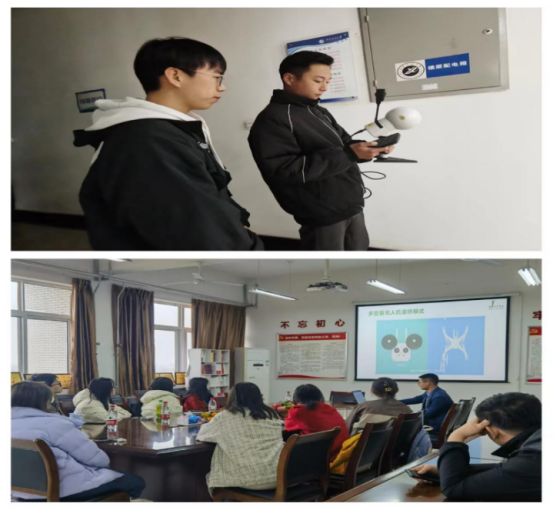 座談會結(jié)束后,企業(yè)工程師吳圓和周珂分別向?qū)W生代表進行了無人機飛行講解和全站掃描儀的演示,并一同參觀了學院三維可視化建模及應用實驗室。